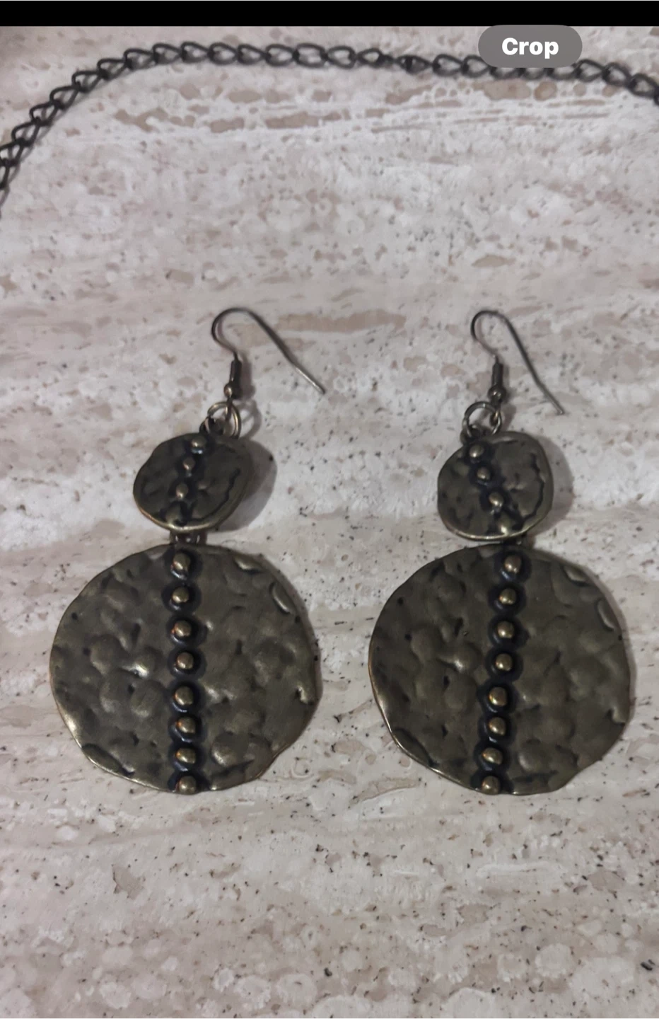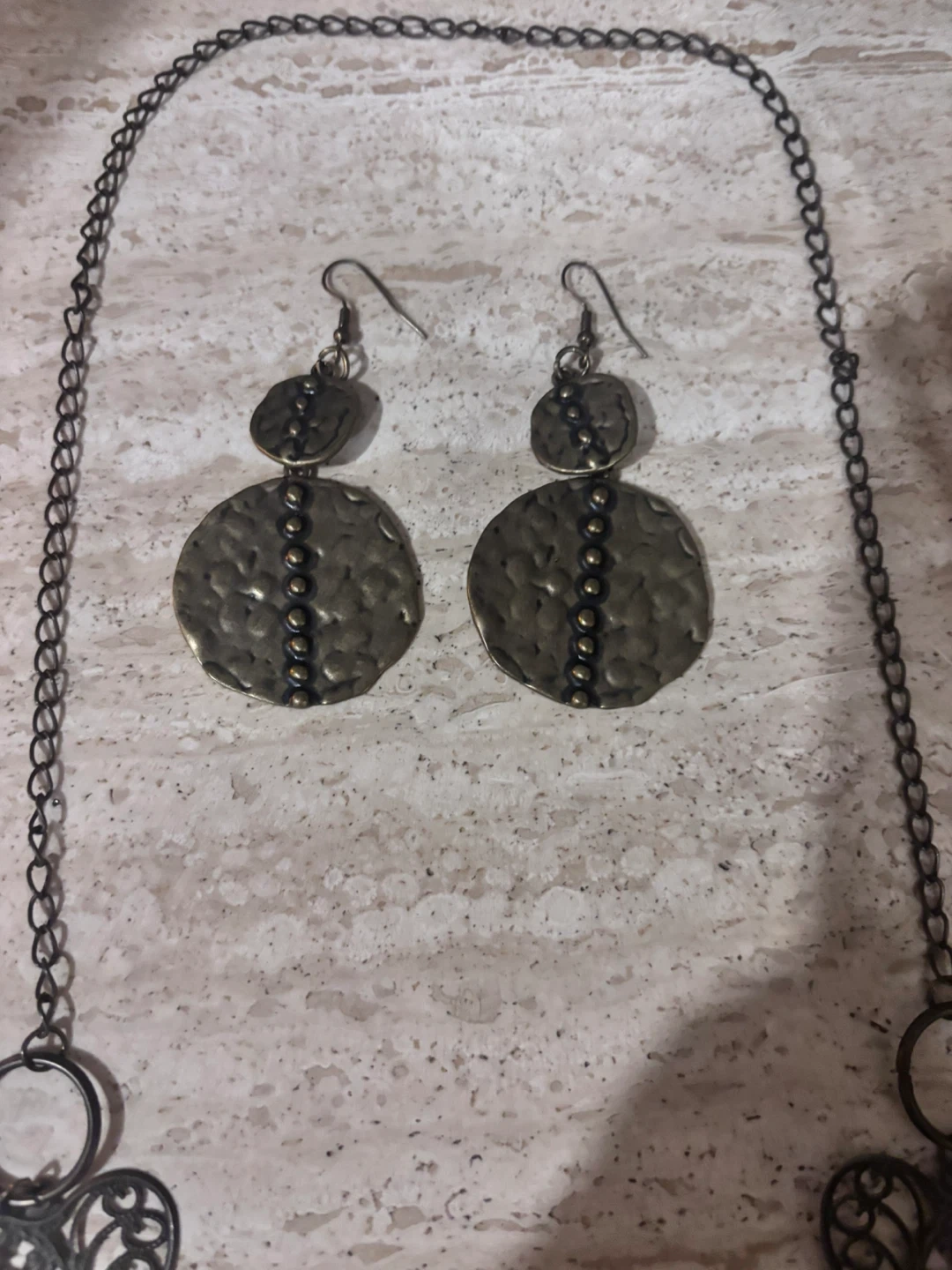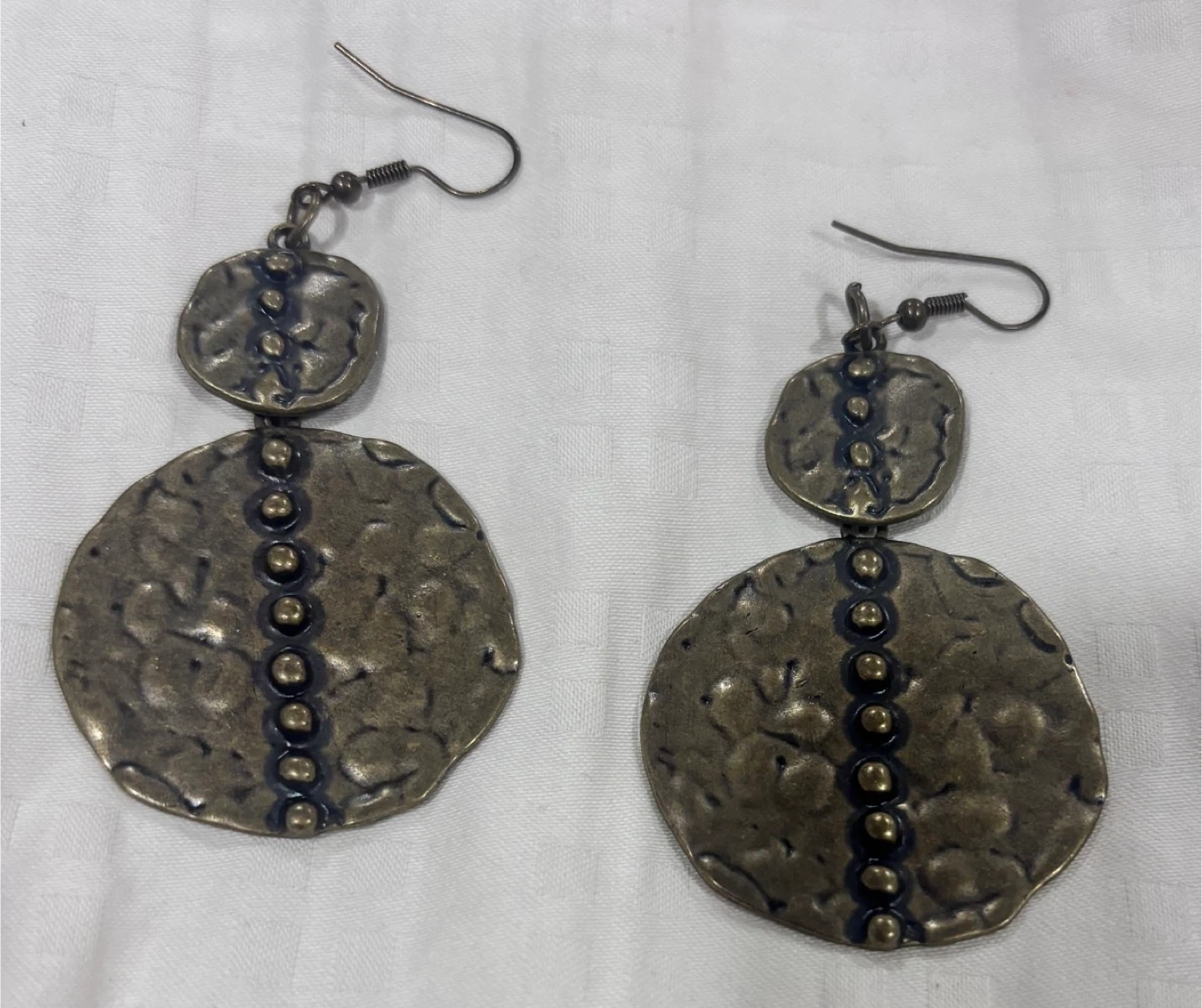 Matching hammered disc drop earrings with bead accents