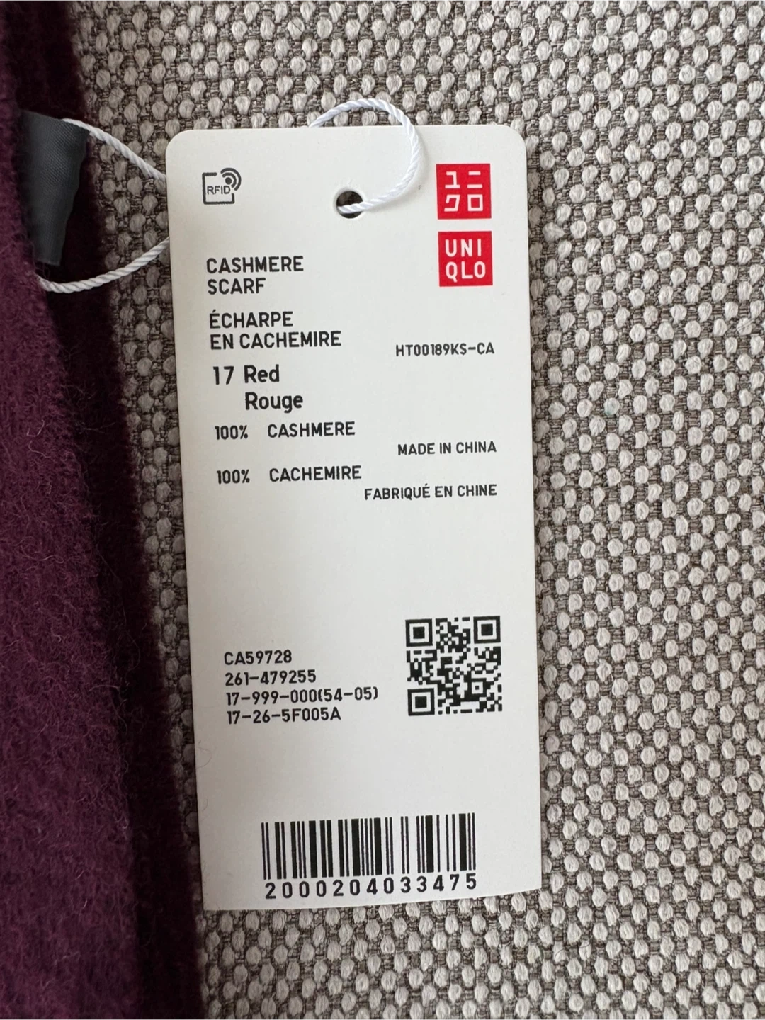 Keep warm with this beautiful Uniqlo cashmere scarf! It's made of 100% cashmere and feels so soft and luxurious. Brand new with all tags - makes a great unisex gift.