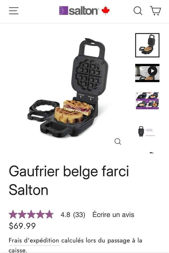 Gaufrier Salton STUFFED – NEUF – gaufres 2 pouces