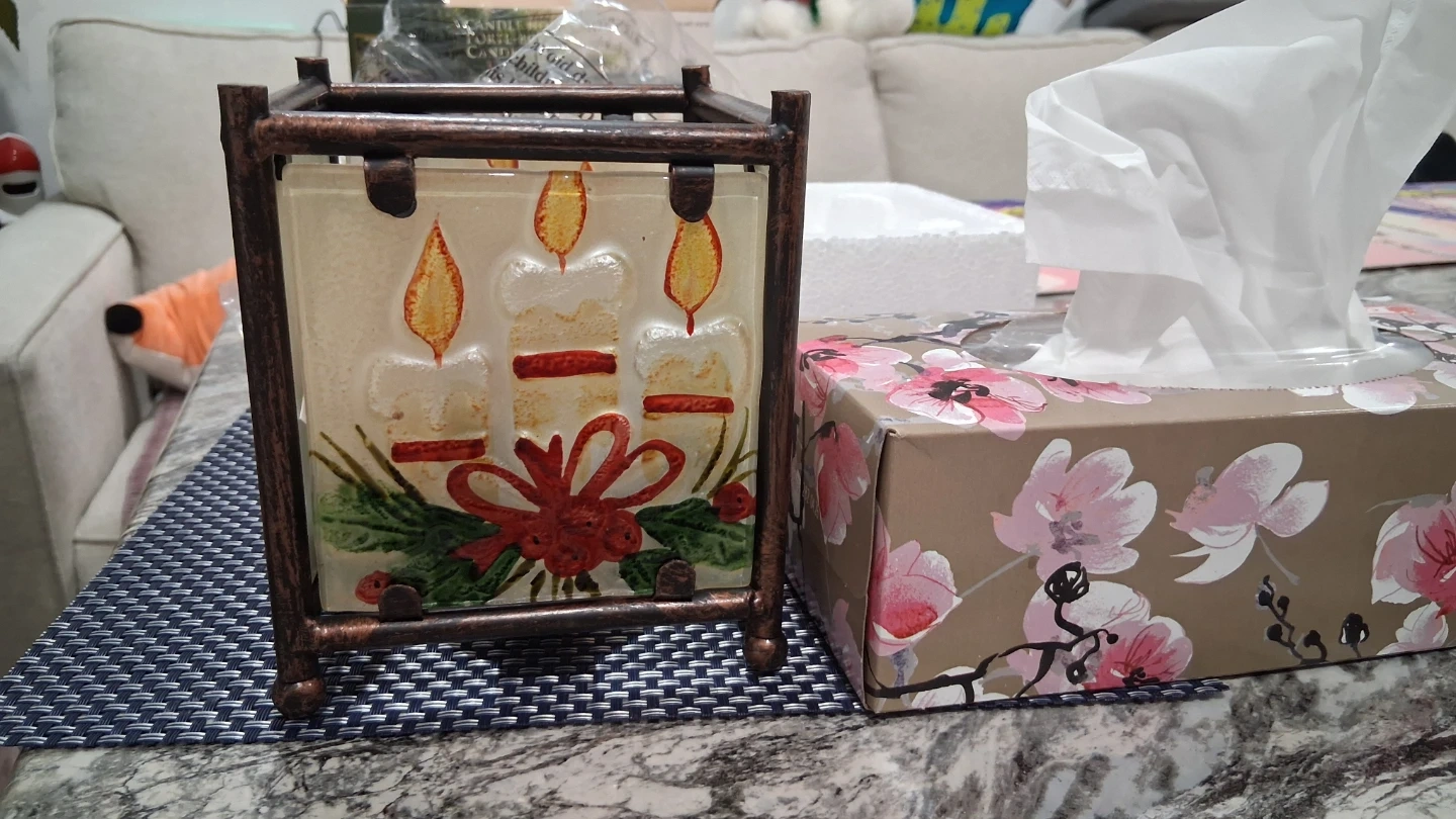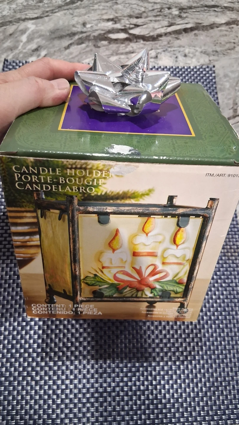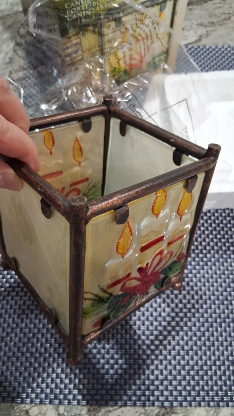 CANDLE.HOLDER, GLASS PANELS WITH METAL SUPPORT, NEW