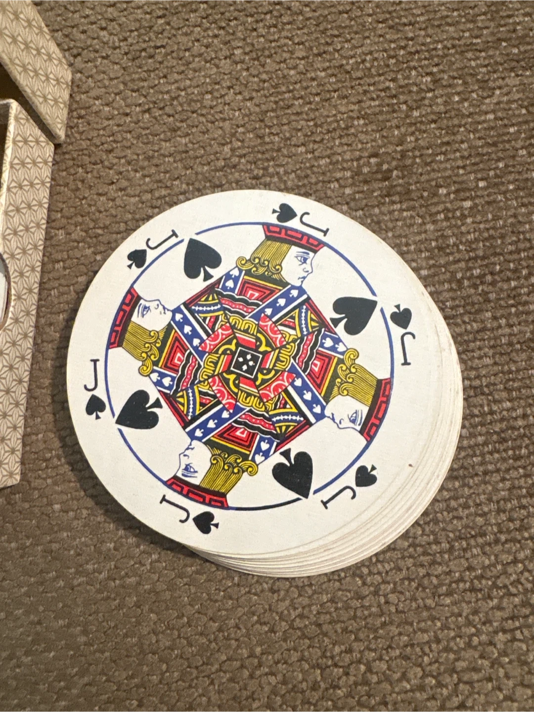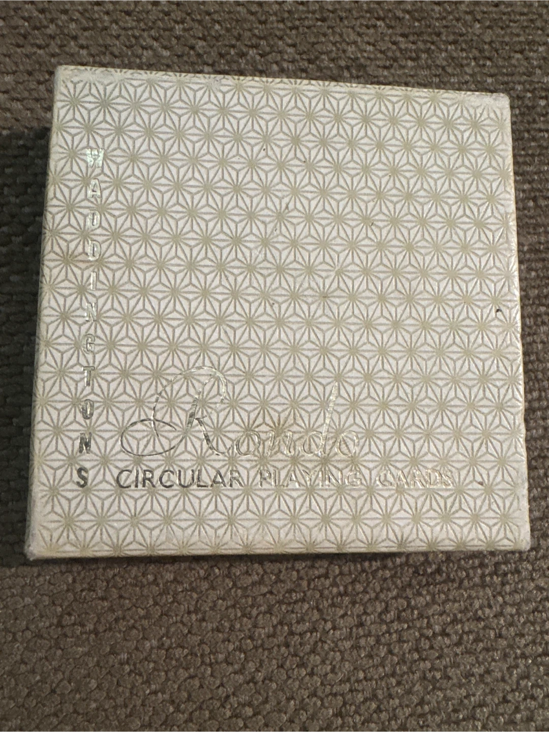 Selling a 1960’s set of Waddingtons Rondo Circular Playing Cards! They come in a decorative box and feature unique circular designs on each card. Perfect for card games or as a collector's item
