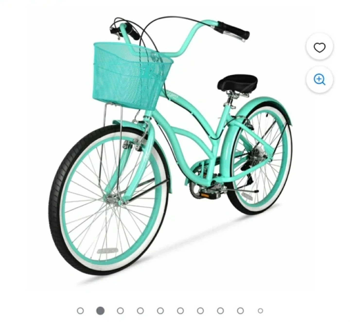 New cruiser bike, used very rarely and selling since I don’t use it often. Very comfortable ride with an easy step-through frame, wide cushioned seat, upright handlebars, and a front basket for everyday use. Smooth single-speed bike in a stylish mint/teal color, ready to ride with no issues.