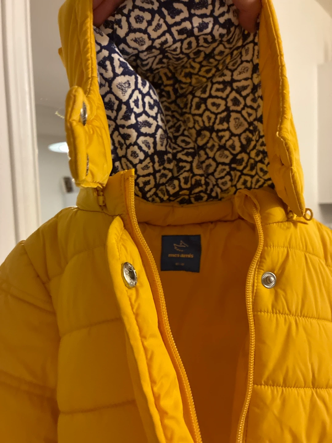 A cute and cozy yellow puffer jacket from Mes Amis! The size is 80/48. Perfect for keeping your little one warm during the colder months. We never used it as my little one’s arms were too long for it!