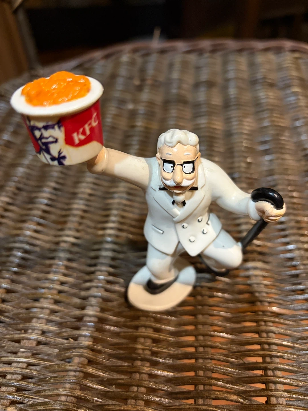 Selling a vintage Colonel Harland Sanders figurine! It's in good condition, with some minor wear as pictured. A fun collectible for any KFC enthusiast or vintage toy collector