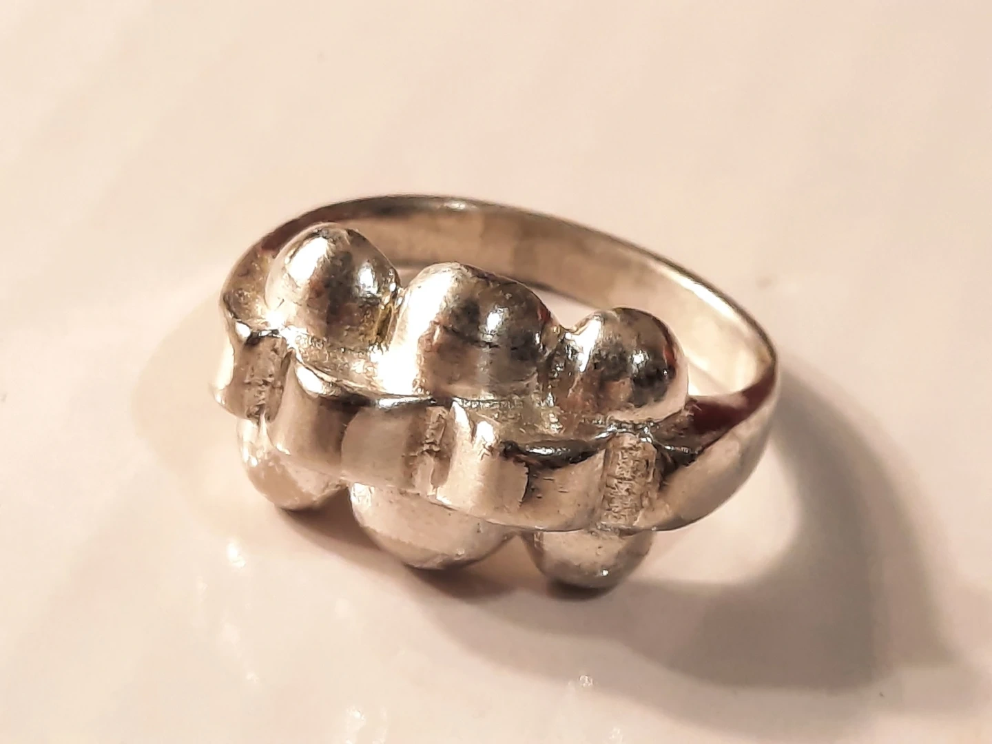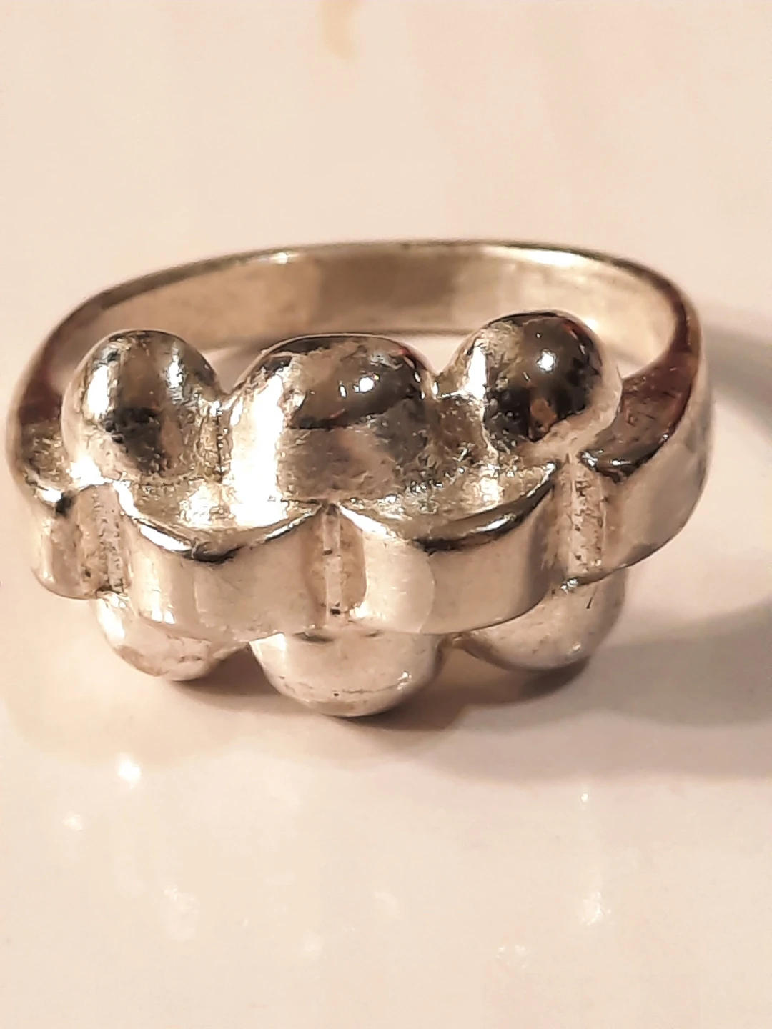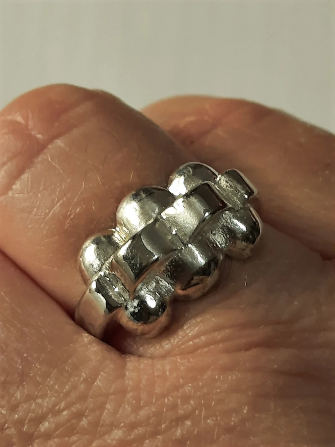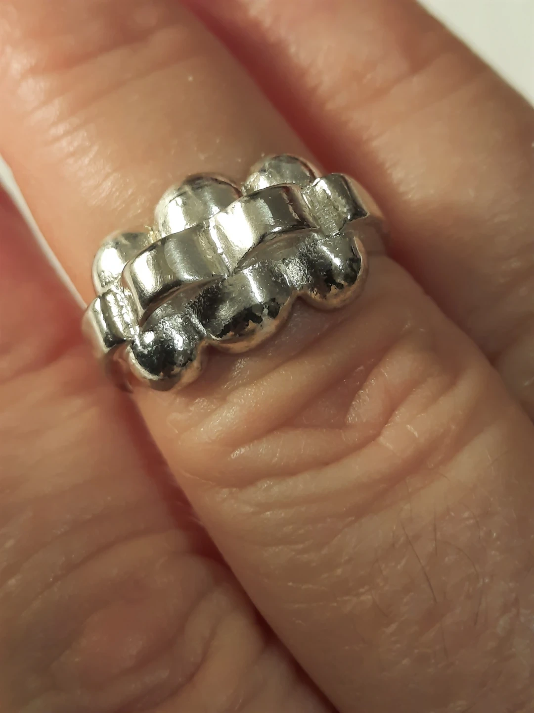 Selling a simple sterling silver ring. It has a unique design, perfect for adding a touch of style to any outfit like new,size 7.5,8