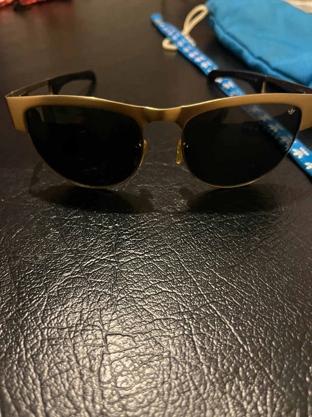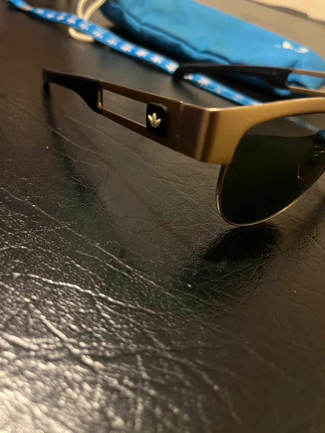 Selling a pair of Adidas sunglasses with a gold frame. They are in good condition and ready for a new owner