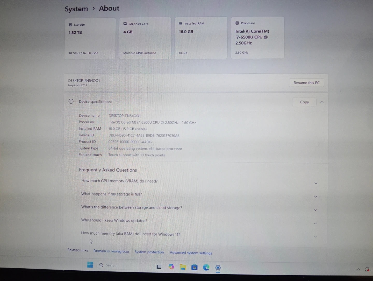 - Intel(R) Core(TM) i7-6500U CPU @ 2.50GHz 2.60 GHz