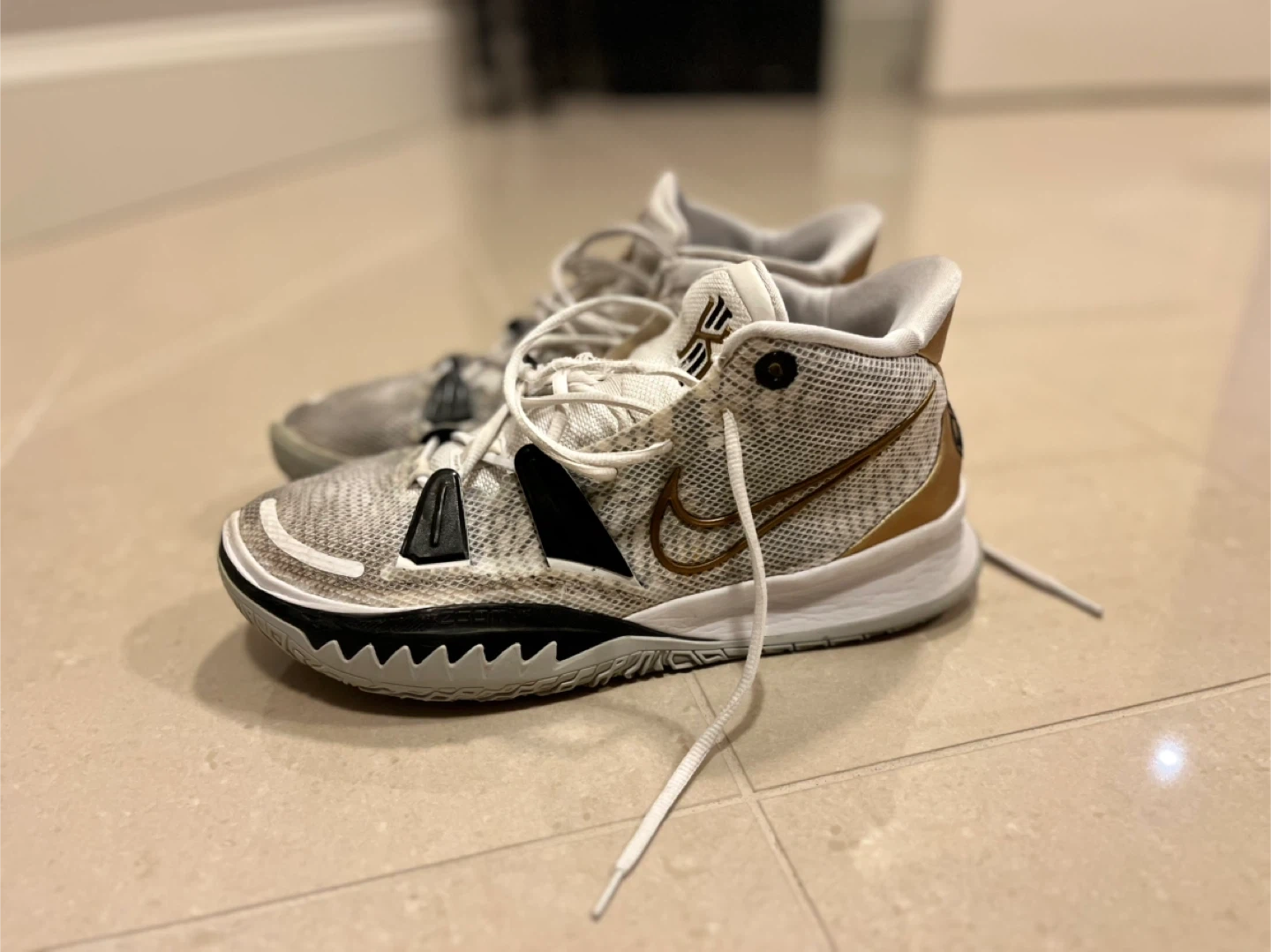 Selling a pair of Nike Kyrie Flytrap 4 basketball shoes in size 9.5 US. They're in good condition and ready for the court or casual wear! The shoes feature a unique design and provide excellent support and comfort.