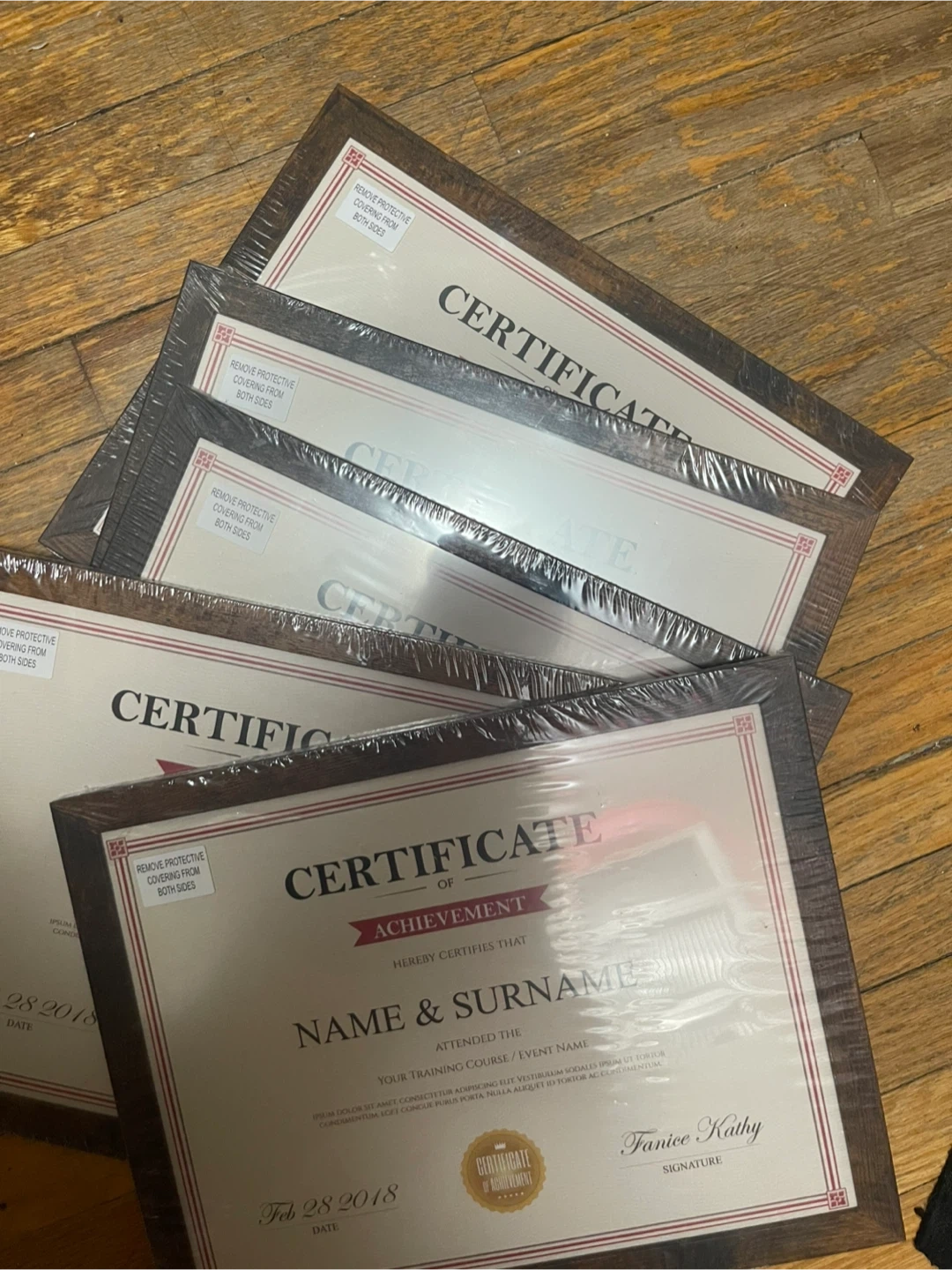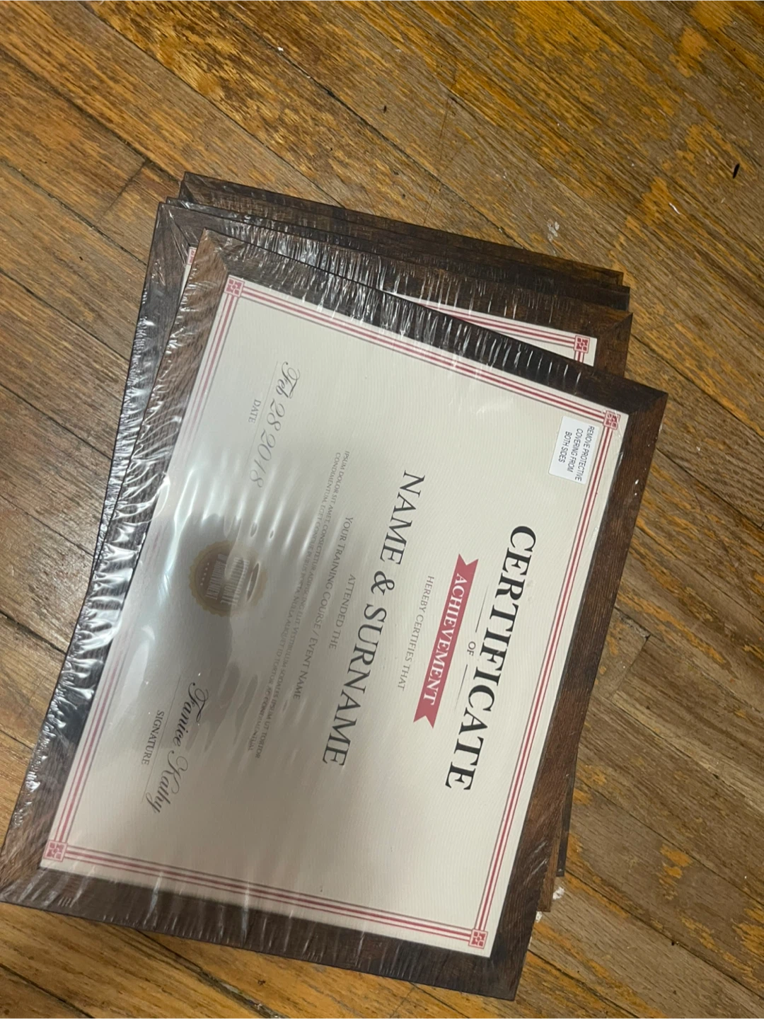 Selling new certificate frames, still in their original packaging! They have a nice wood finish. Perfect for displaying your achievements or photos.