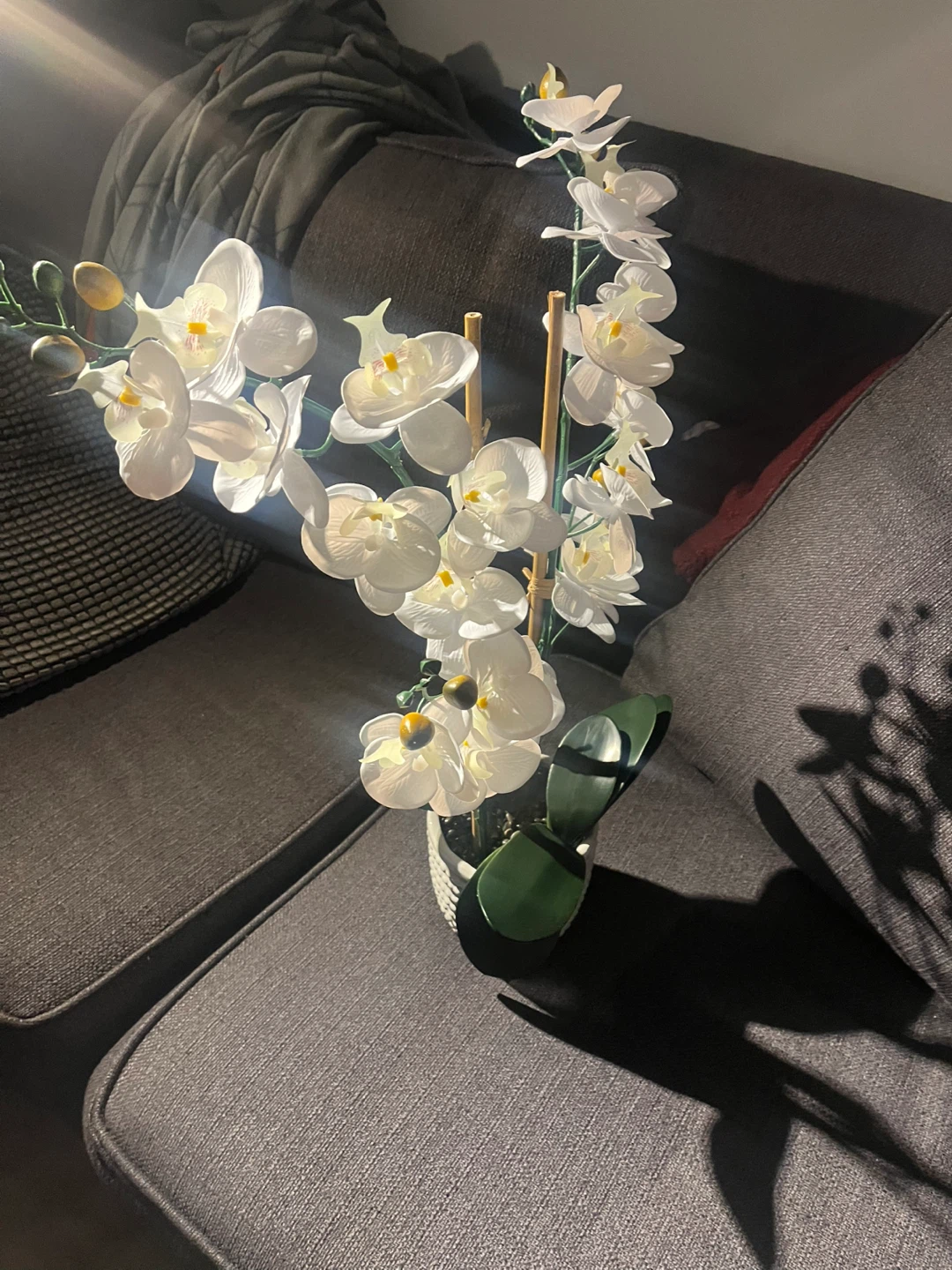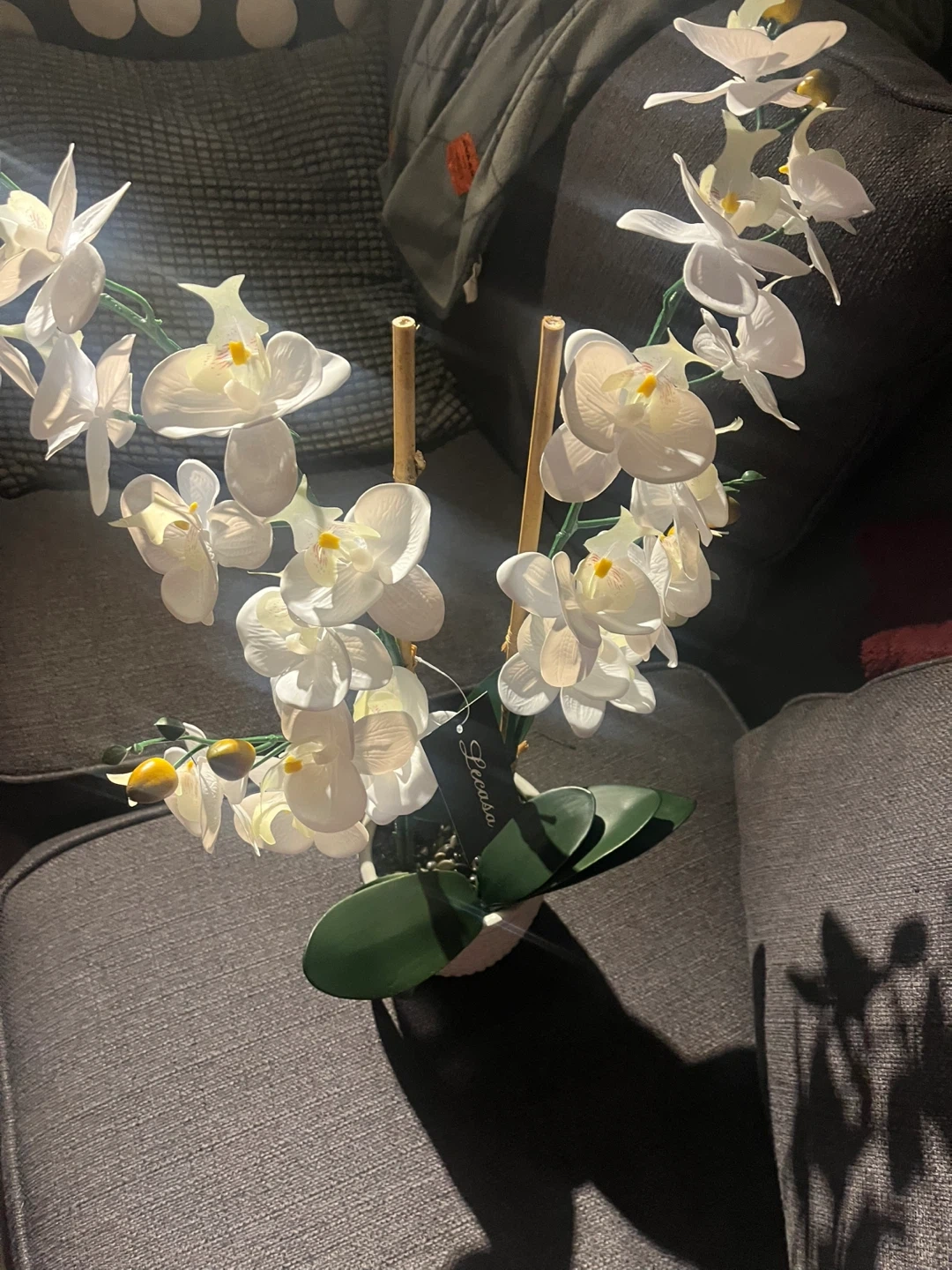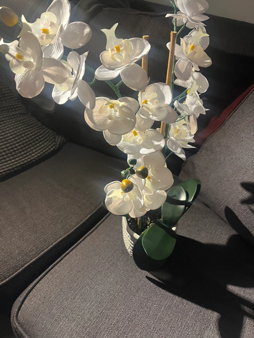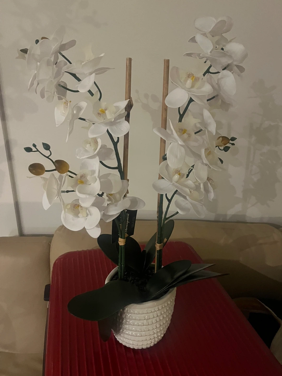 Selling a lovely Decasa artificial orchid arrangement! It features beautiful white flowers and would make a great addition to any room