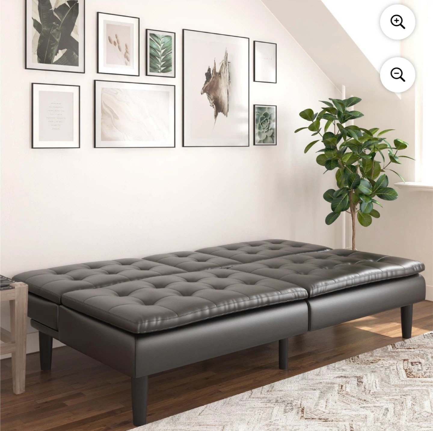 Selling a Mainstays Memory Foam Futon Sofa Bed in Black Faux Leather.