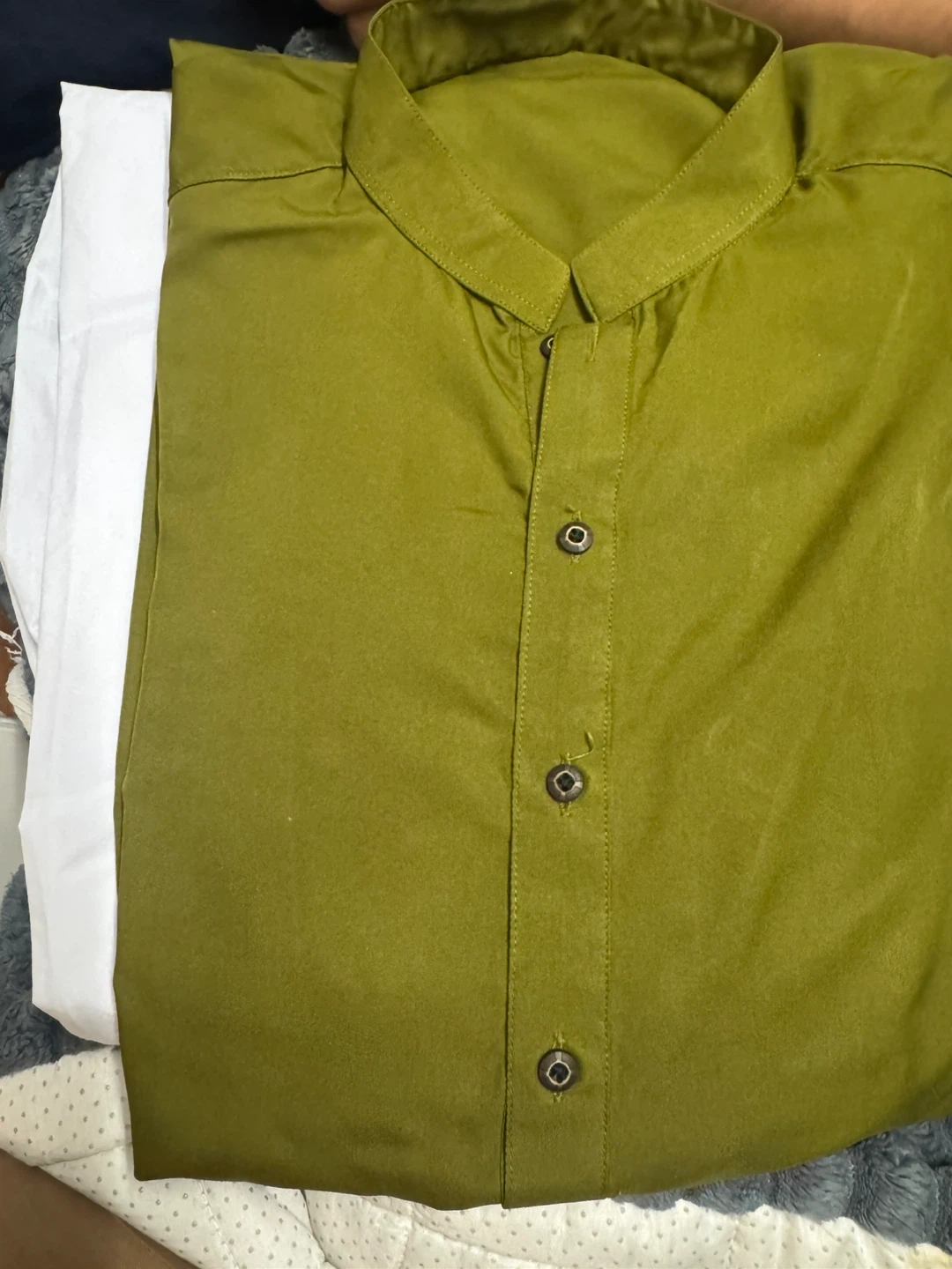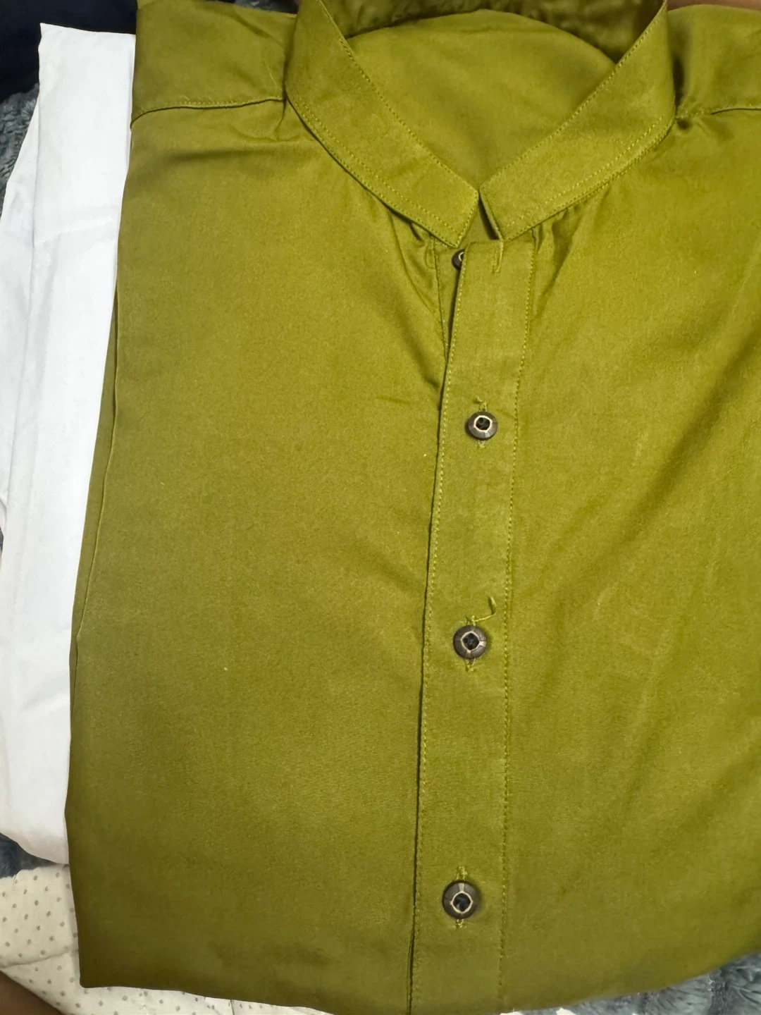 Selling a green kurta shirt and trouser . It's in great condition and ready for a new owner! The colour is a nice, earthy green.