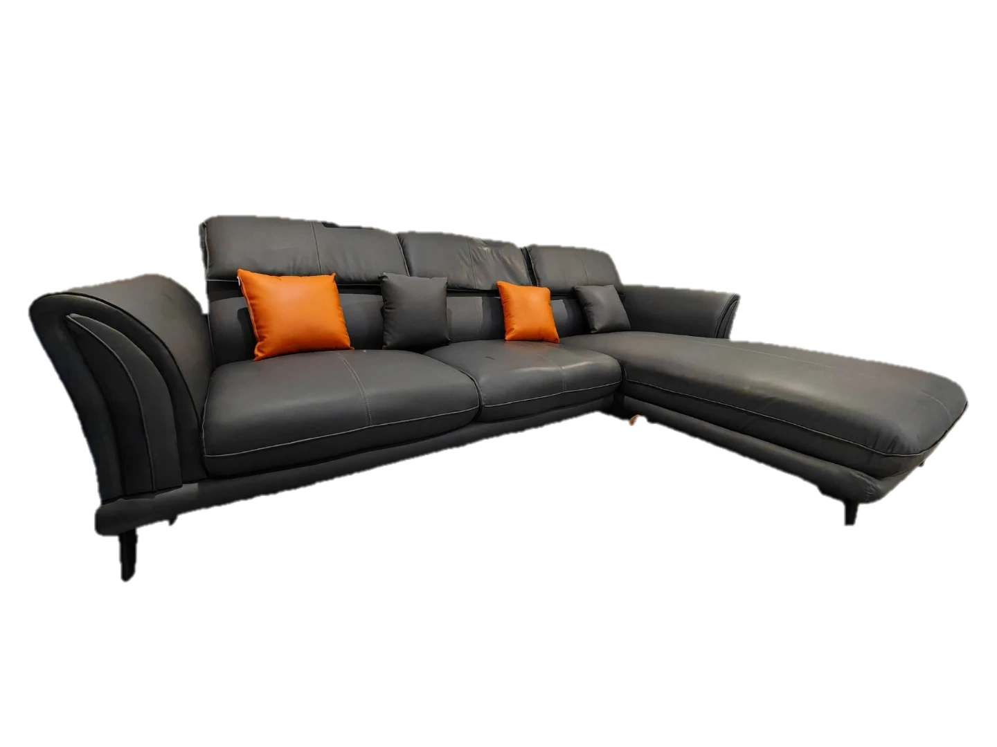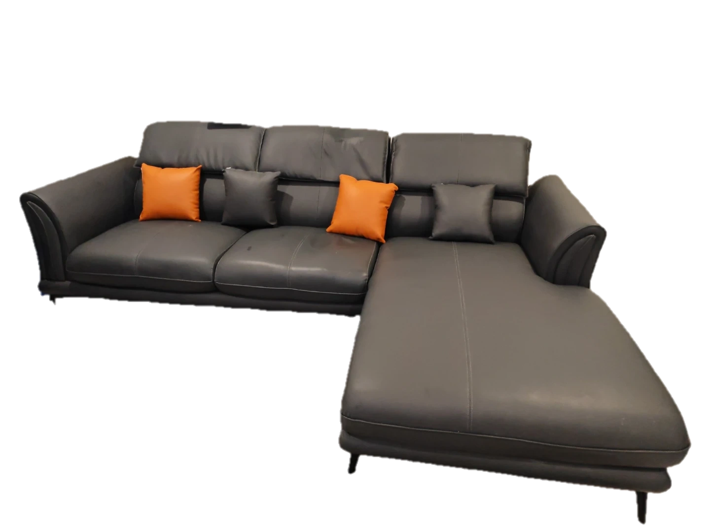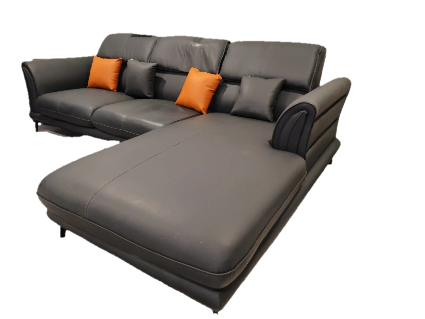 Grey Leather Sectional Sofa with Pillows