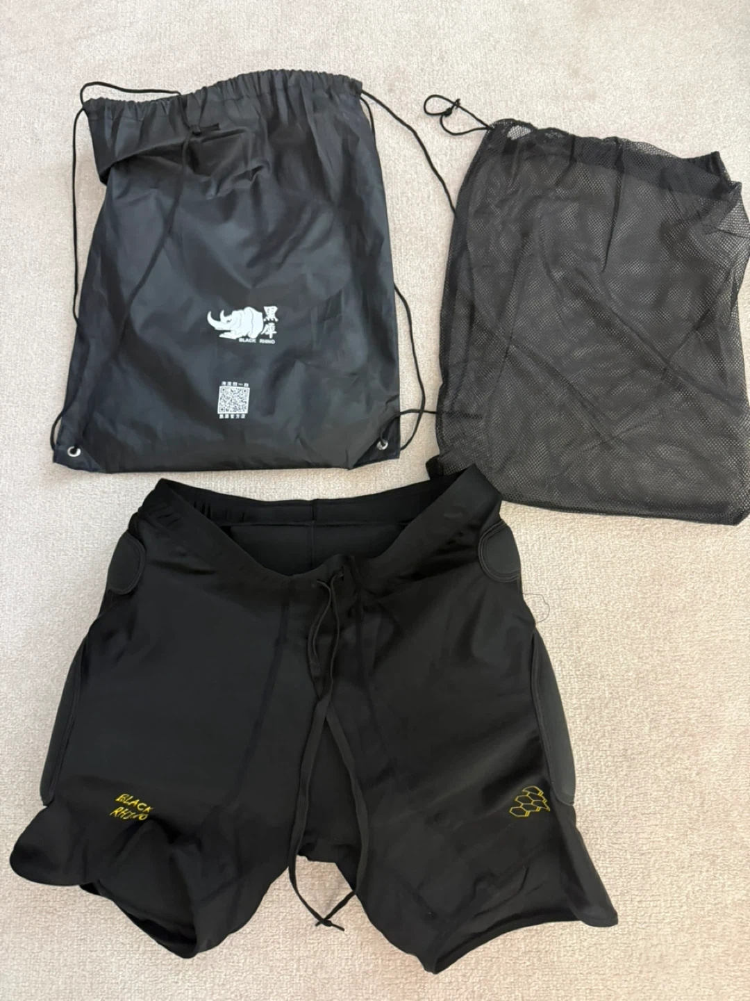 Selling a pair of Black Rhino impact shorts.(Wore 1 time) They come with two bags. Perfect for protecting yourself while skating or snowboarding!