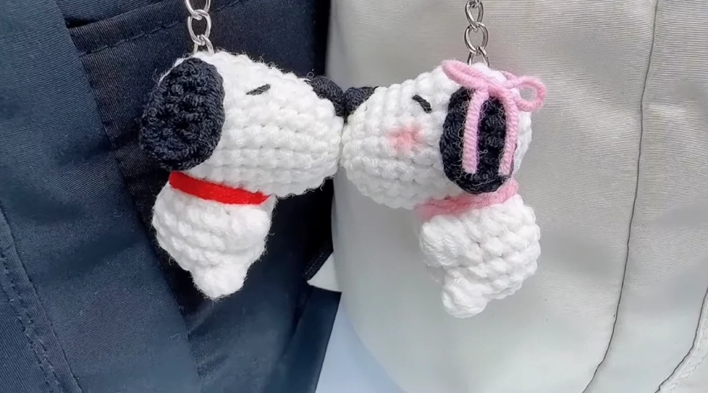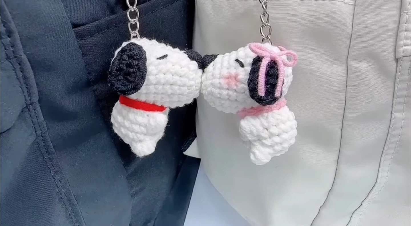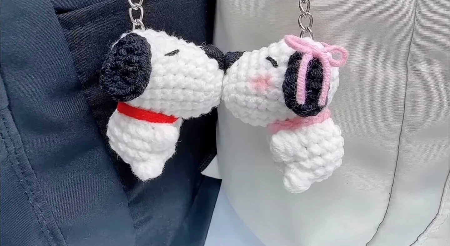 These adorable crochet Snoopy keychains are perfect for couples! They're handmade with love and attention to detail. One Snoopy has a red collar, and the other has a pink bow. They are in great condition and ready to add some cuteness to your keys or bags