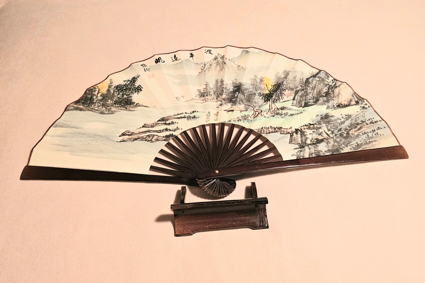 Gorgeous Large Vintage Chinese Hand Painted Fan with Stand $40