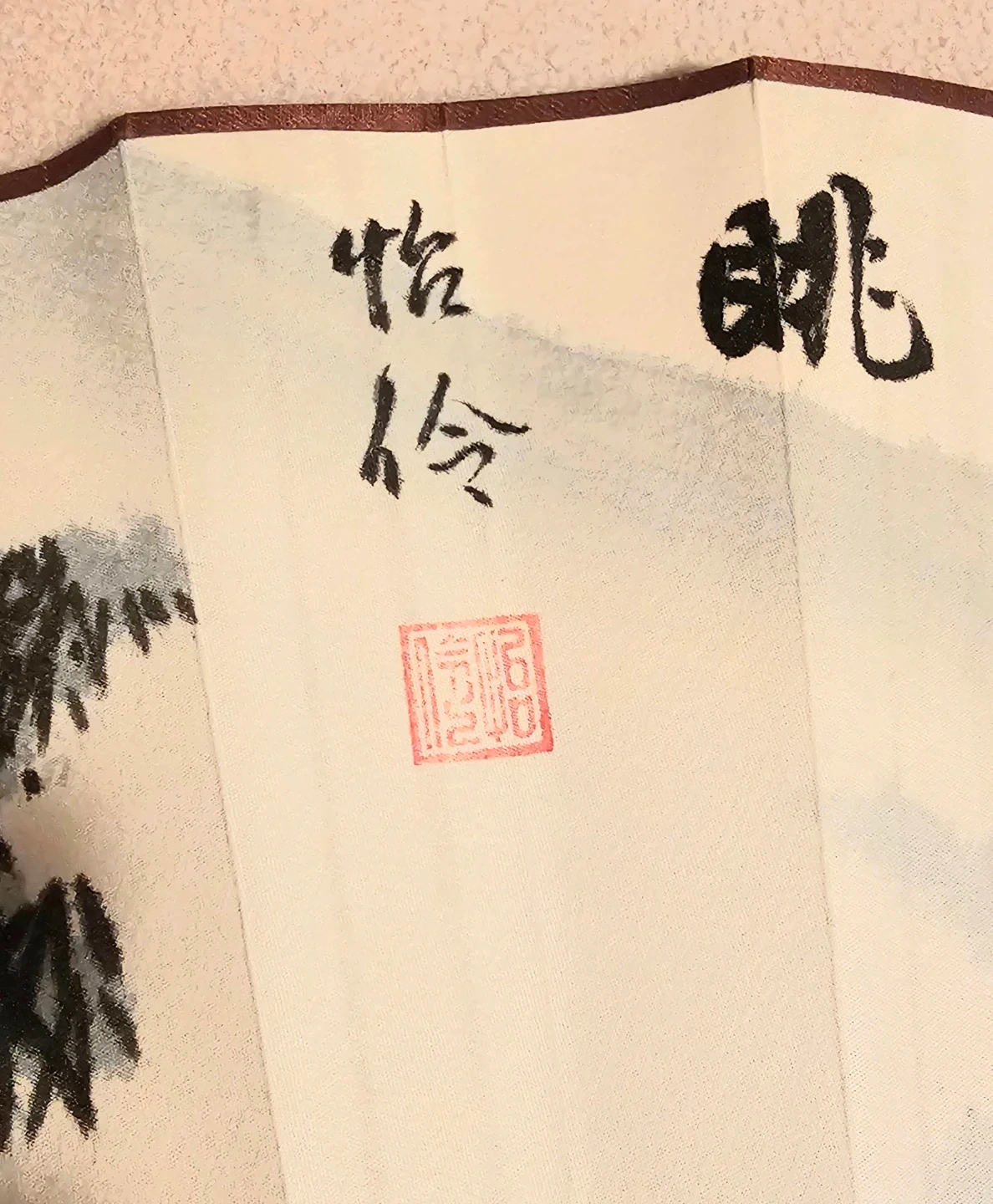 Gorgeous large 36.5" vintage Chinese hand painted fan. The fan features a beautiful delicate landscape painting with calligraphy on paper over bamboo frame. It's a unique piece of art that would look great in any home displayed on a wall or on its own wooden stand. Excellent Condition $40