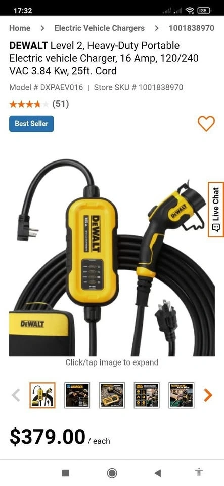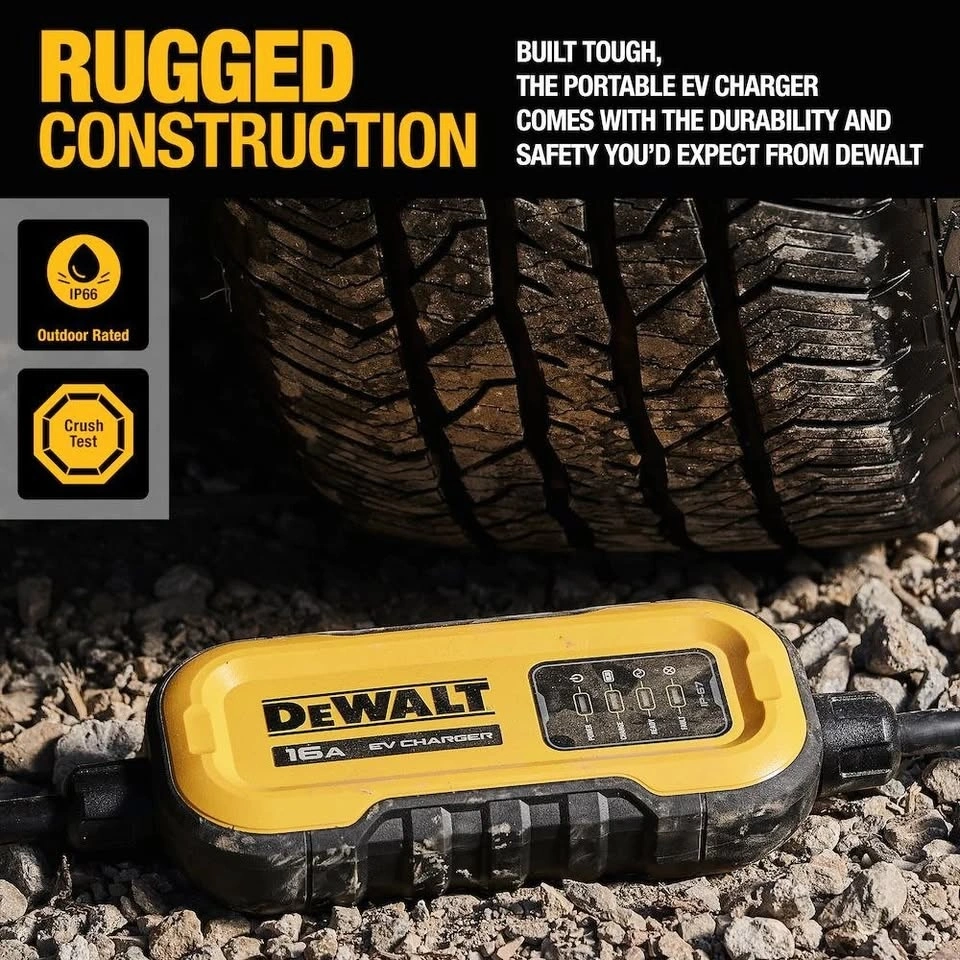 Charge your electric vehicle anywhere with this DEWALT Portable EV Charger β powerful, safe, and built to last. No installation required. Perfect for home, travel, or emergency backup charging.