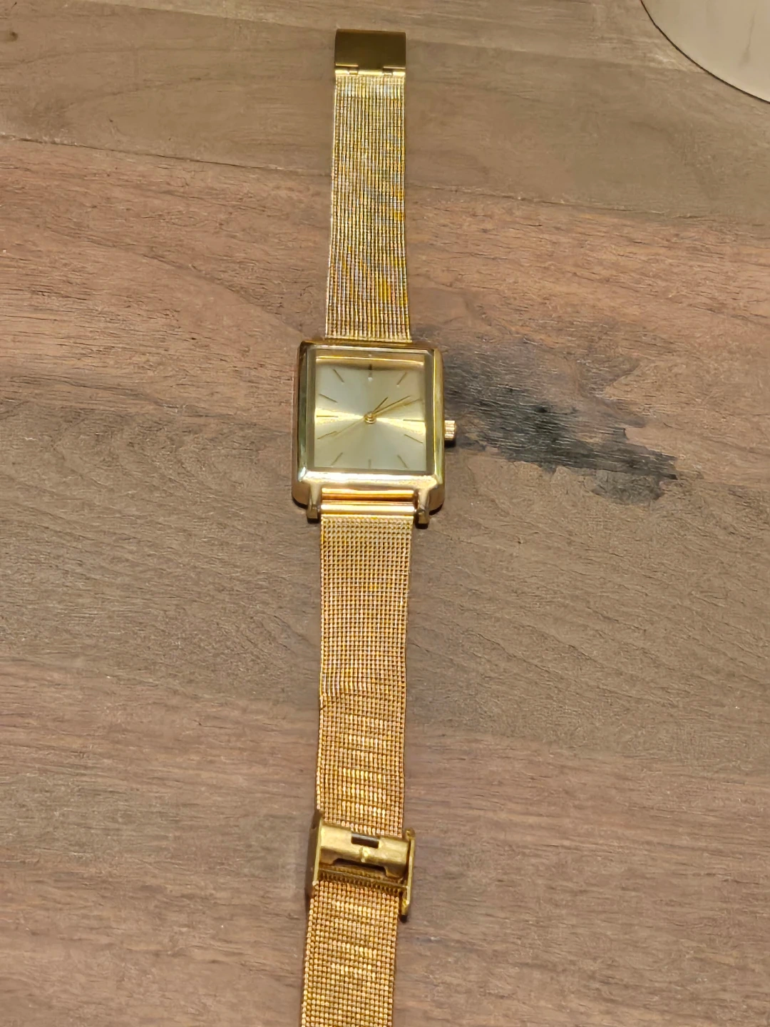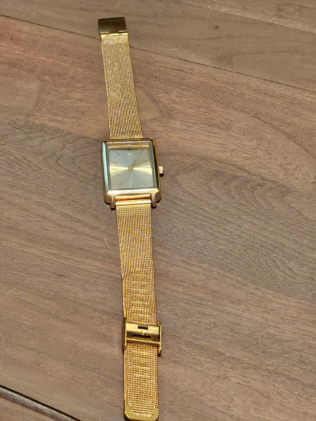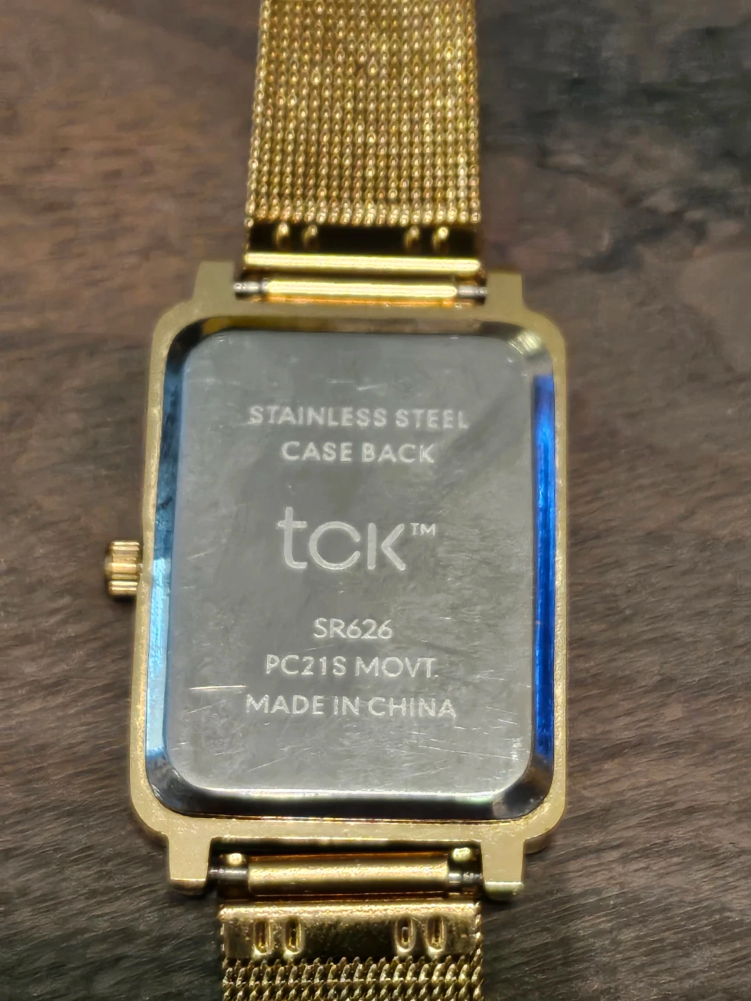 Selling a stylish TCK watch with a gold stainless steel mesh band. The case back is also stainless steel. It's in great shape and ready for a new wrist!