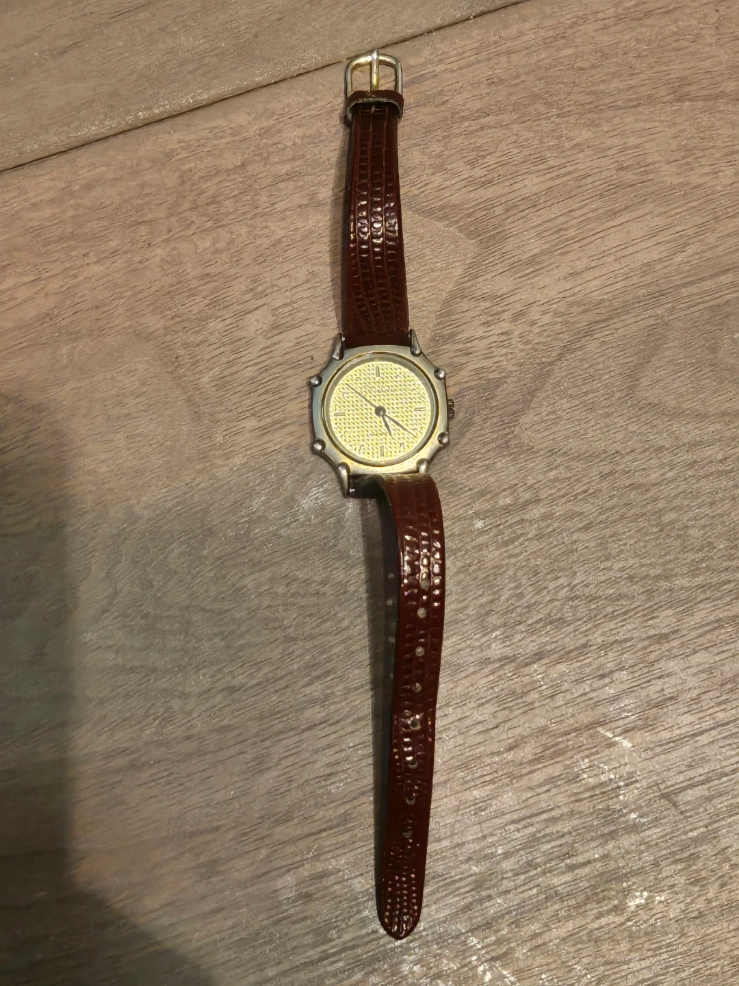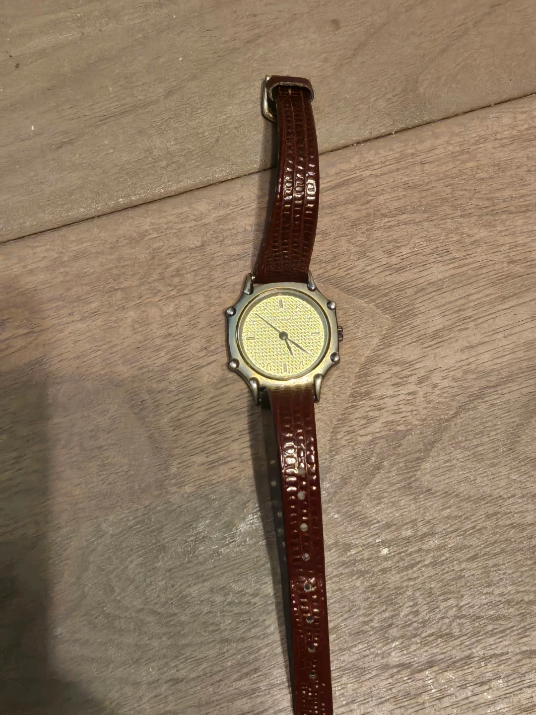 Selling a Rochelle Quartz watch. It features a brown leather strap and a gold-tone face. The watch is in good condition and ready to wear! It's a stylish and classic timepiece that would make a great addition to any collection