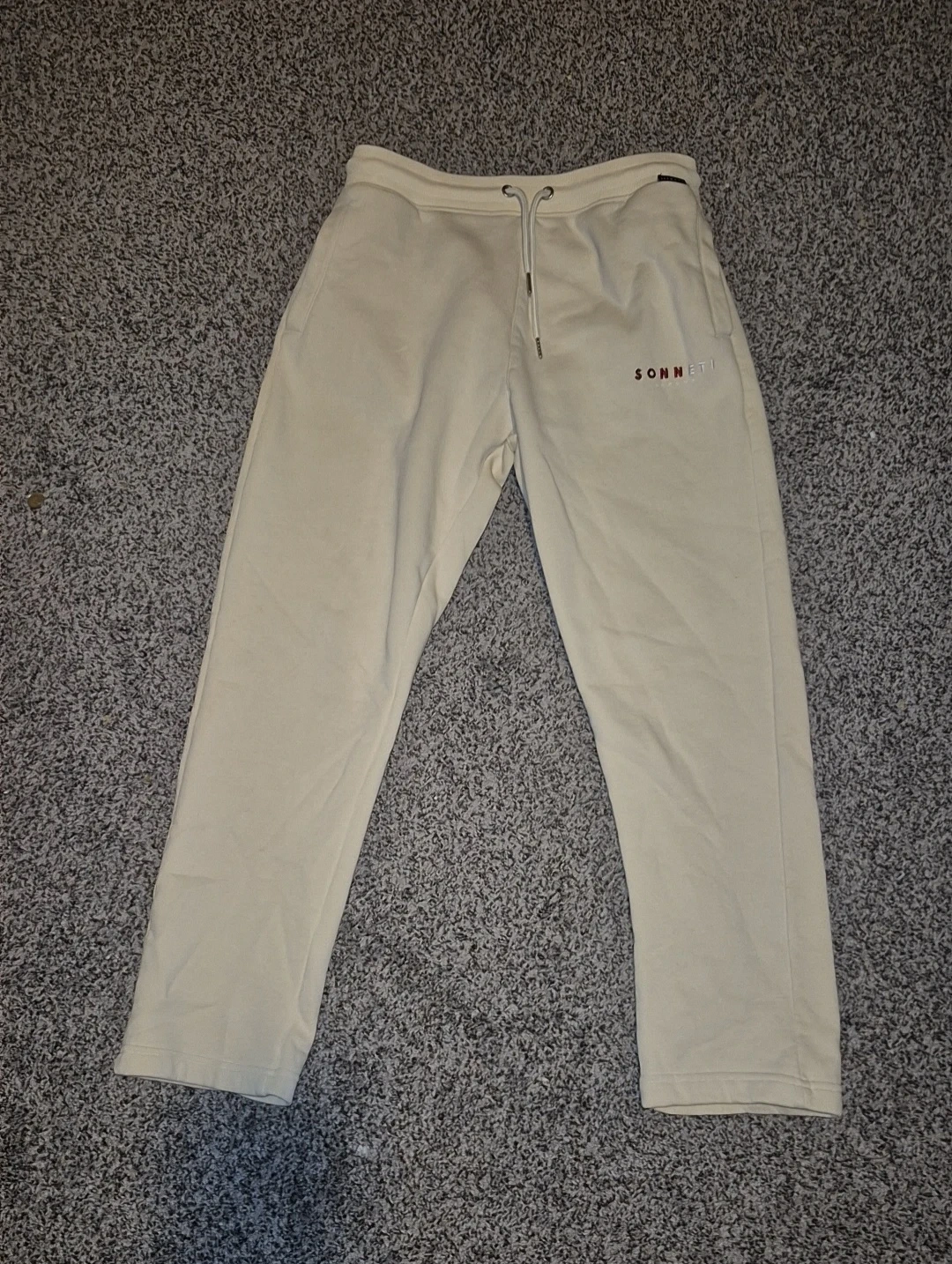 Selling a pair of cream-coloured SONNETI joggers. They're in great shape and super comfy for lounging or hitting the streets!