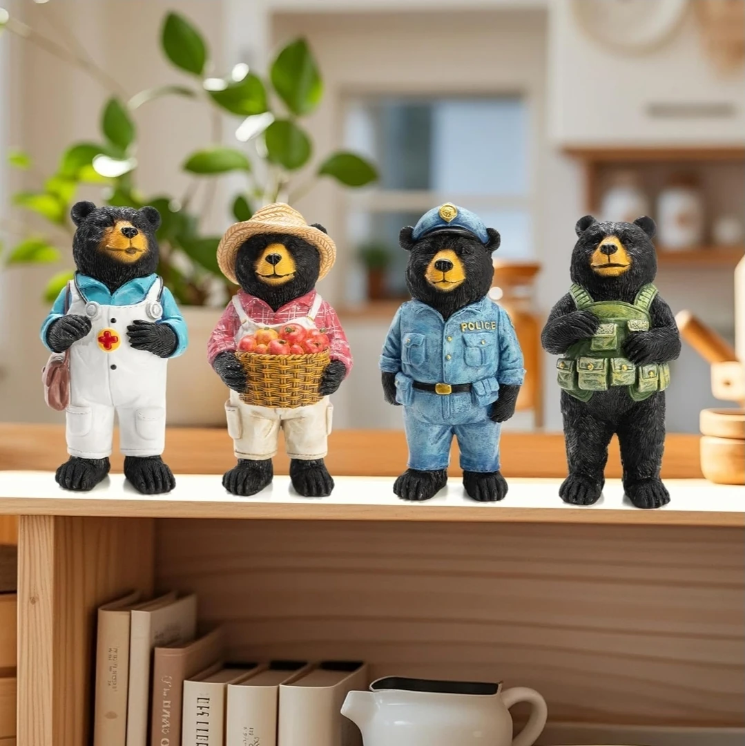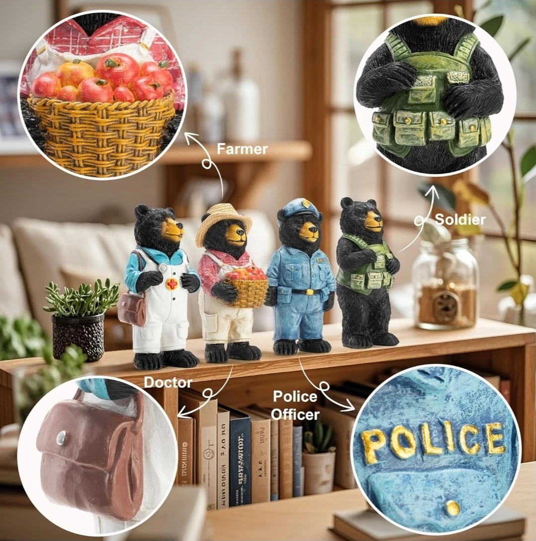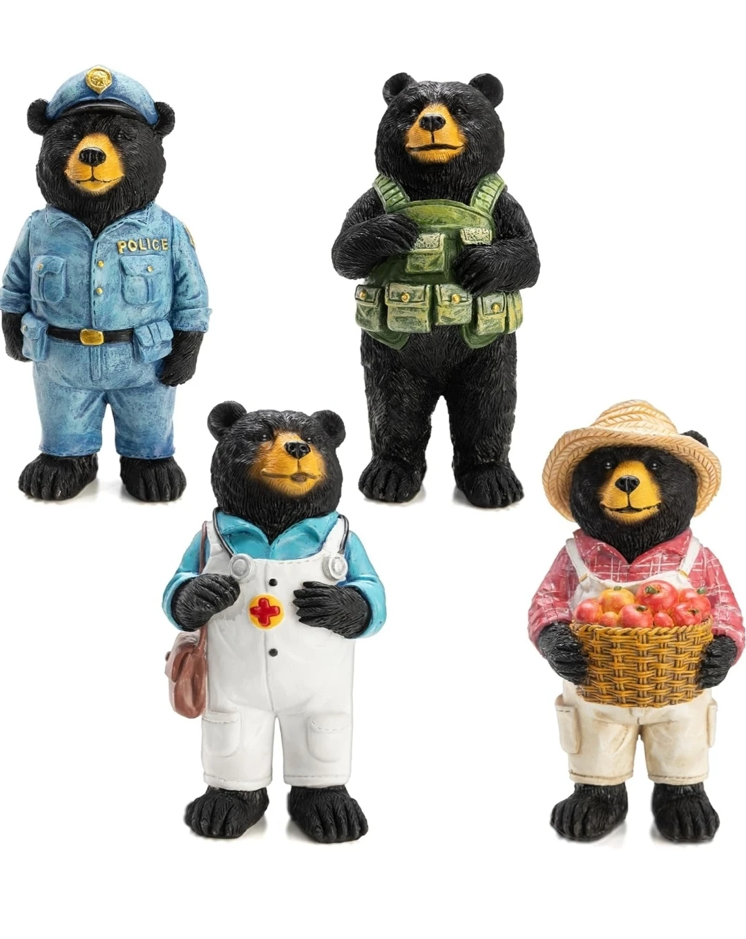 🐻 Item: 4-Piece Black Bear Collectible Figurine Set (Resin, Hand-Painted)