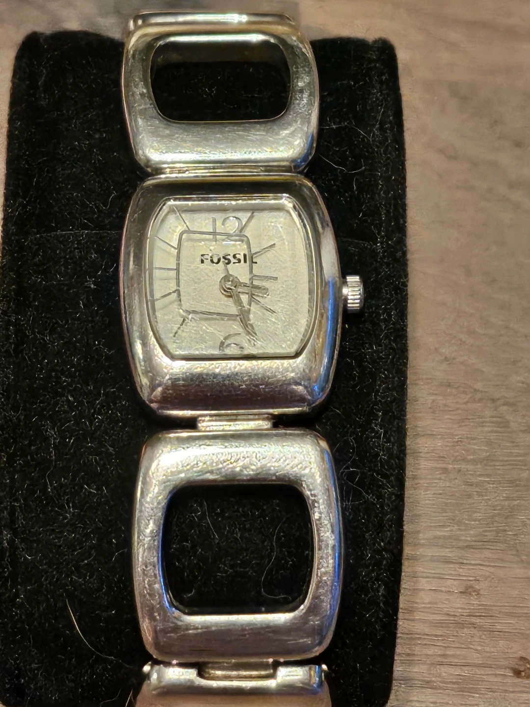 Selling a Fossil women's watch in silver! It's a stylish and classic timepiece that would make a great addition to any outfit. The middle square is loose and moves around, Hans the reason it's free.