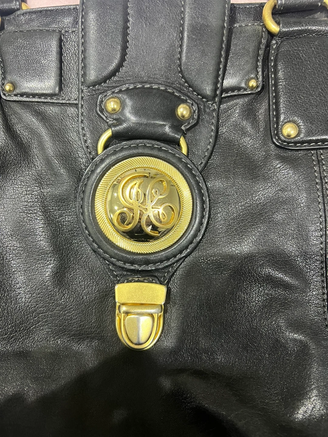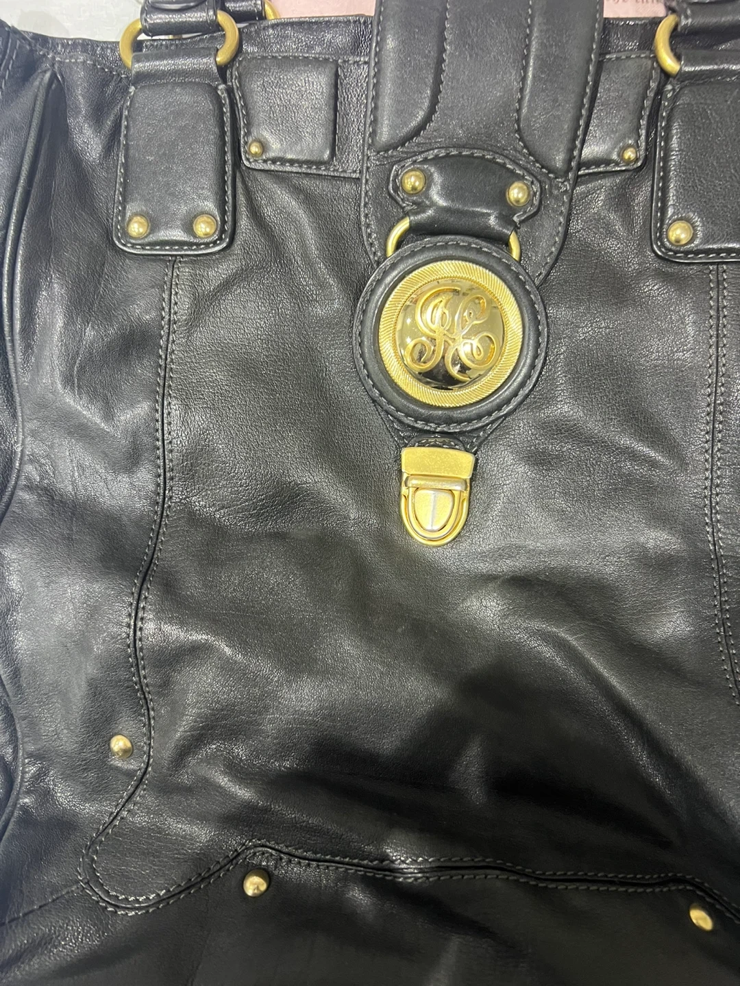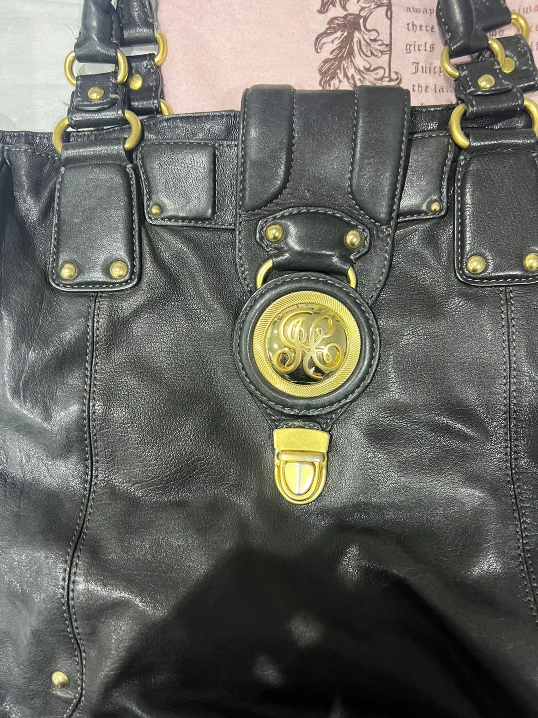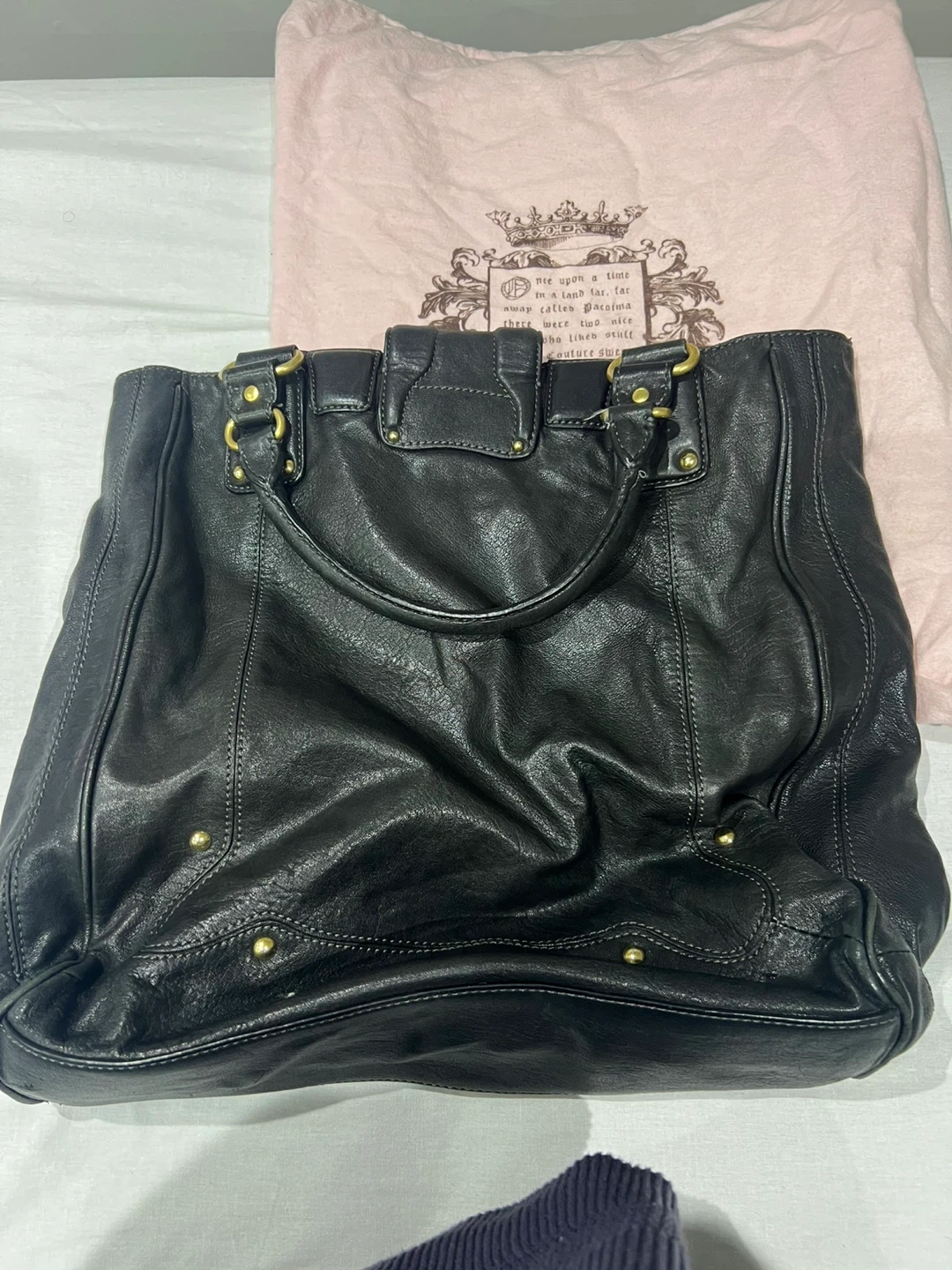 Check out this stylish Juicy Couture black leather tote bag! It's in good condition and ready for a new owner. Perfect for everyday use or a night out