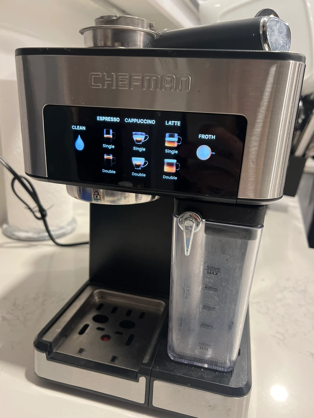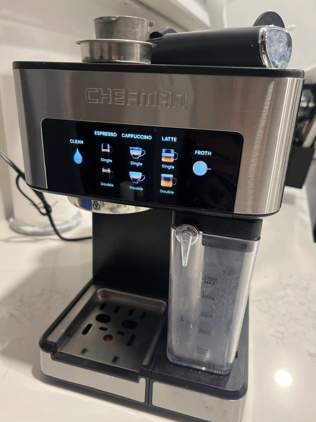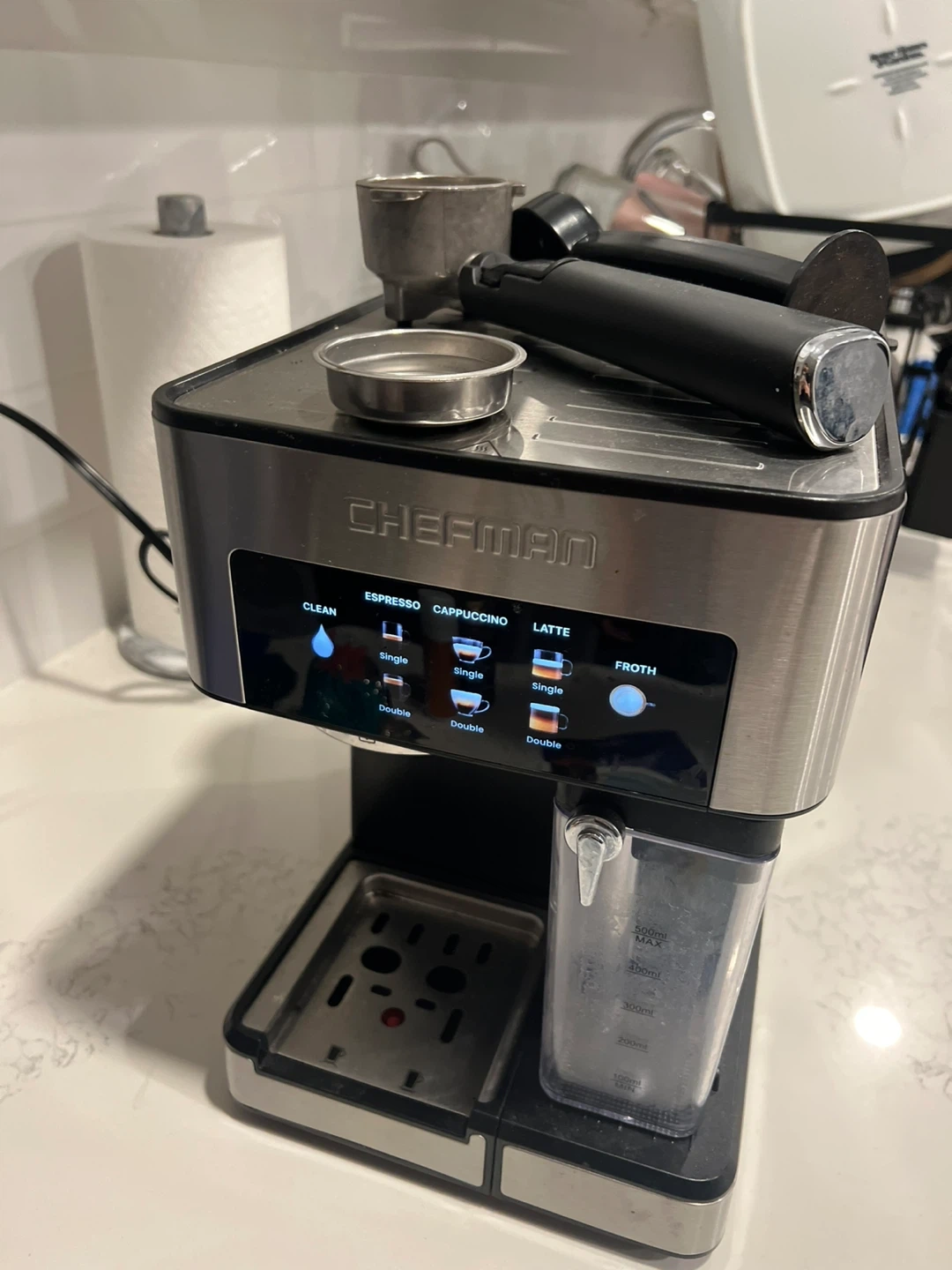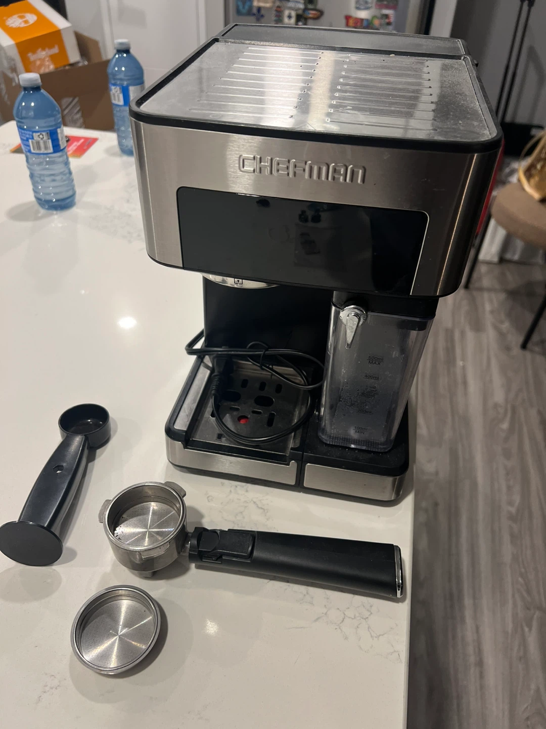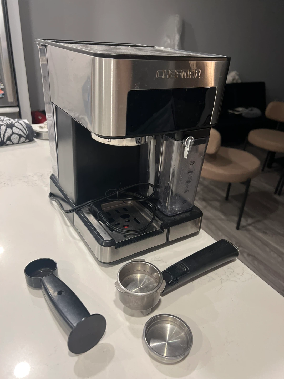 Selling a Chefman espresso machine! It can make espresso, cappuccino, and lattes. It also has a frothing function. Comes with all the accessories pictured