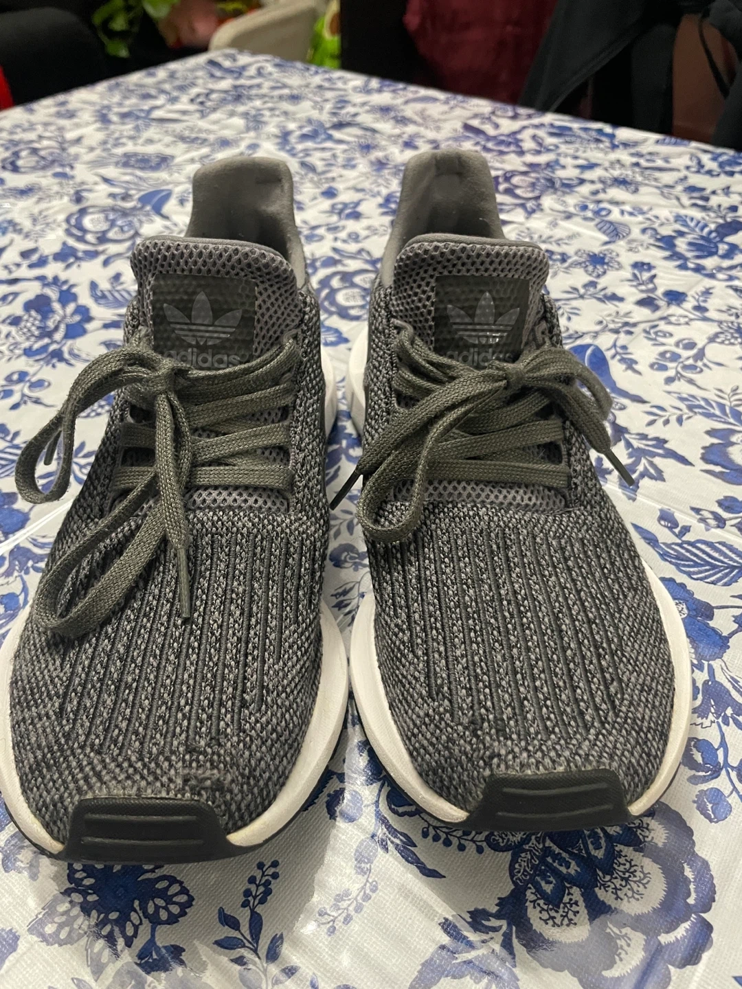 Selling a pair of Adidas Swift Run sneakers in grey. They're in good condition and ready for a new owner! These are comfortable and stylish for everyday wear size 8.5