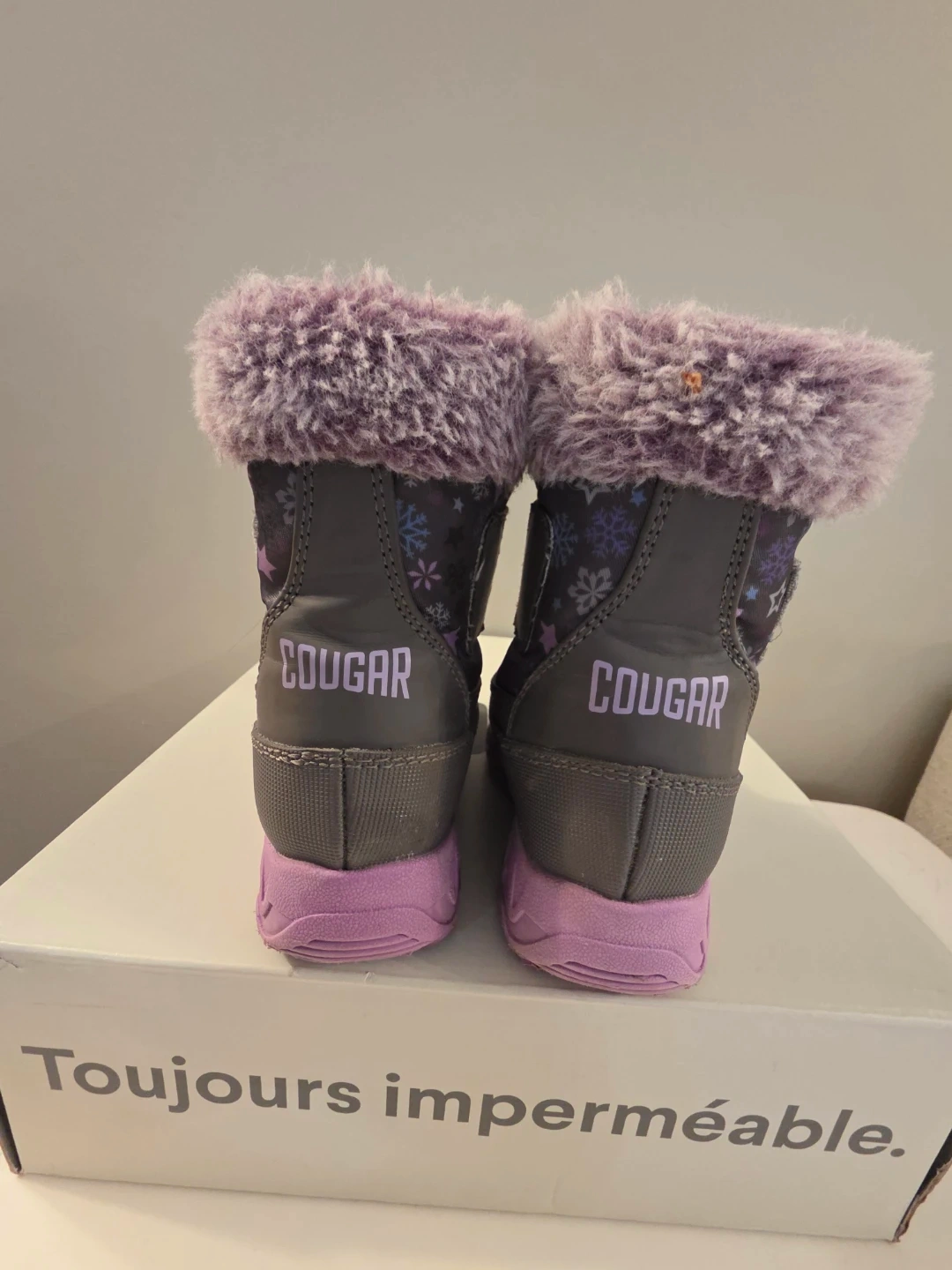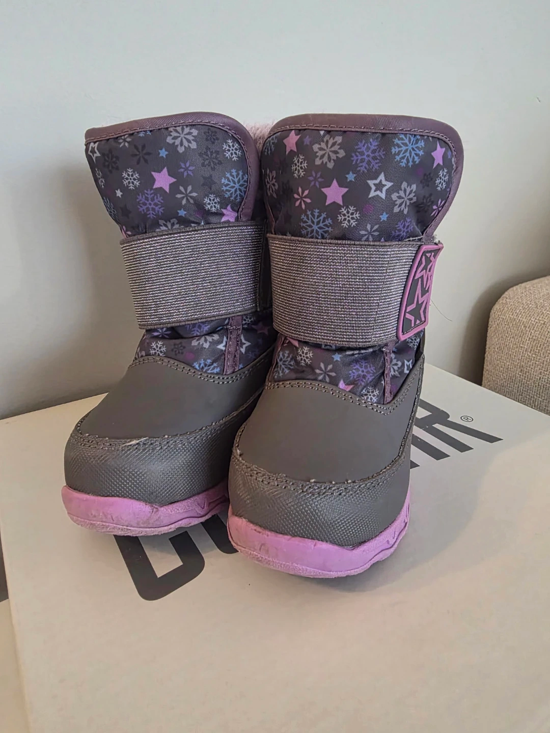 Selling a pair of Cougar Soar Charcoal winter boots in a size 6. These boots are waterproof and have a cute snowflake and star pattern. They come with the original box!