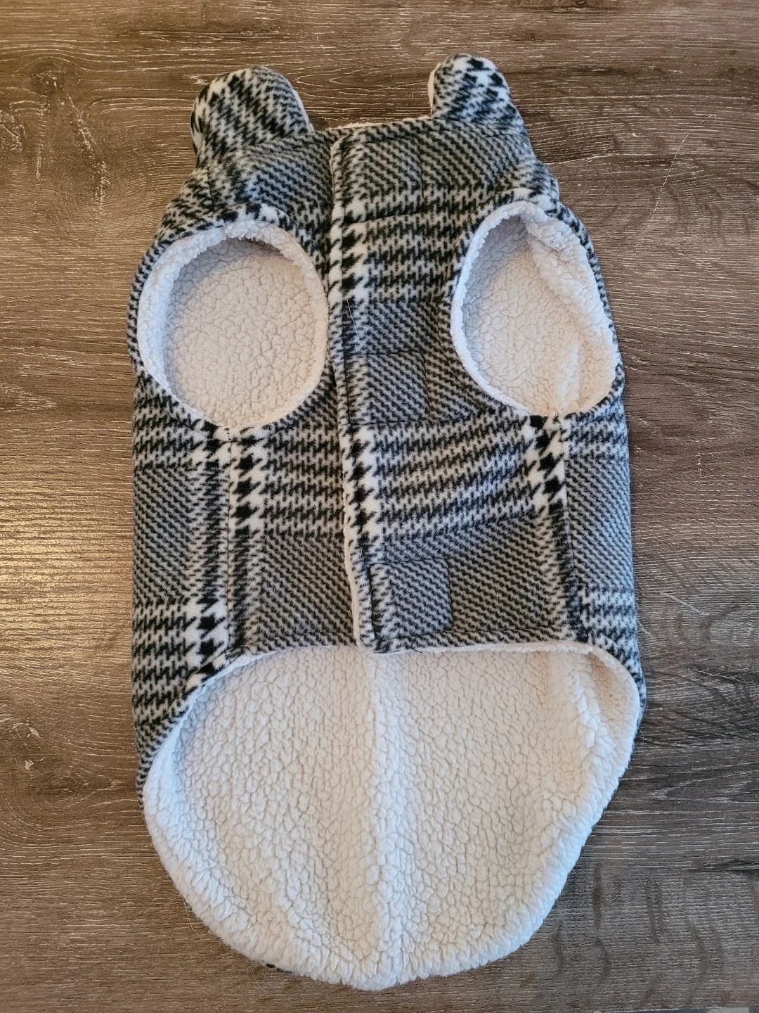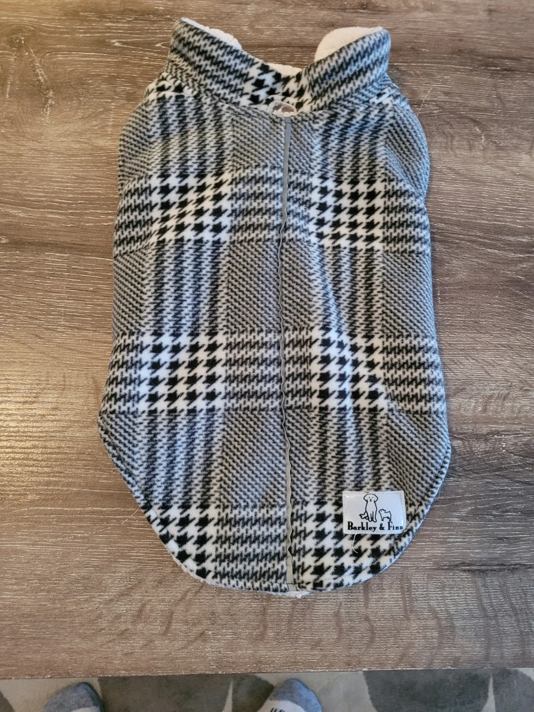 Keep your furry friend warm with this cozy Barkley & Finn dog coat! It's a size M/M and features a stylish plaid pattern on one side and a soft, sherpa-like material on the other. Perfect for those chilly Canadian walks!