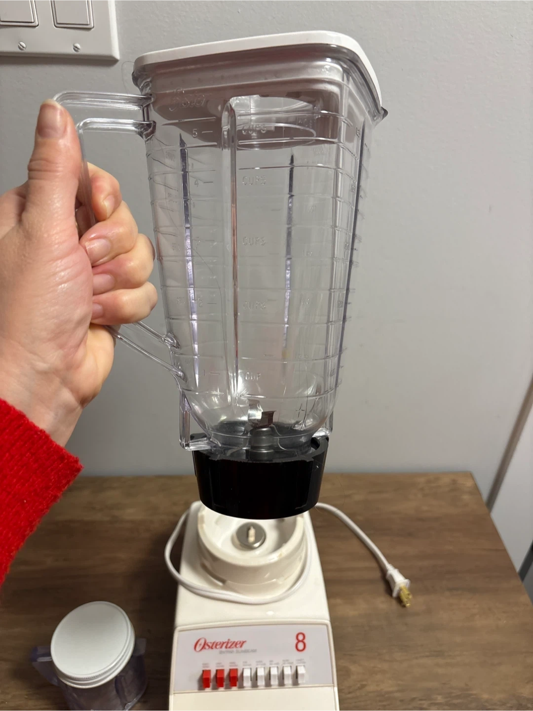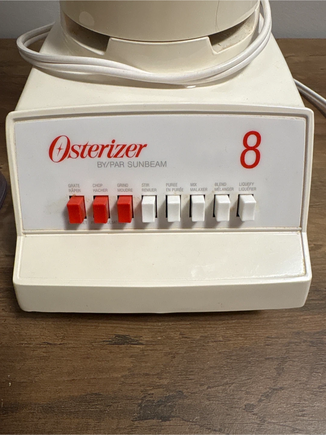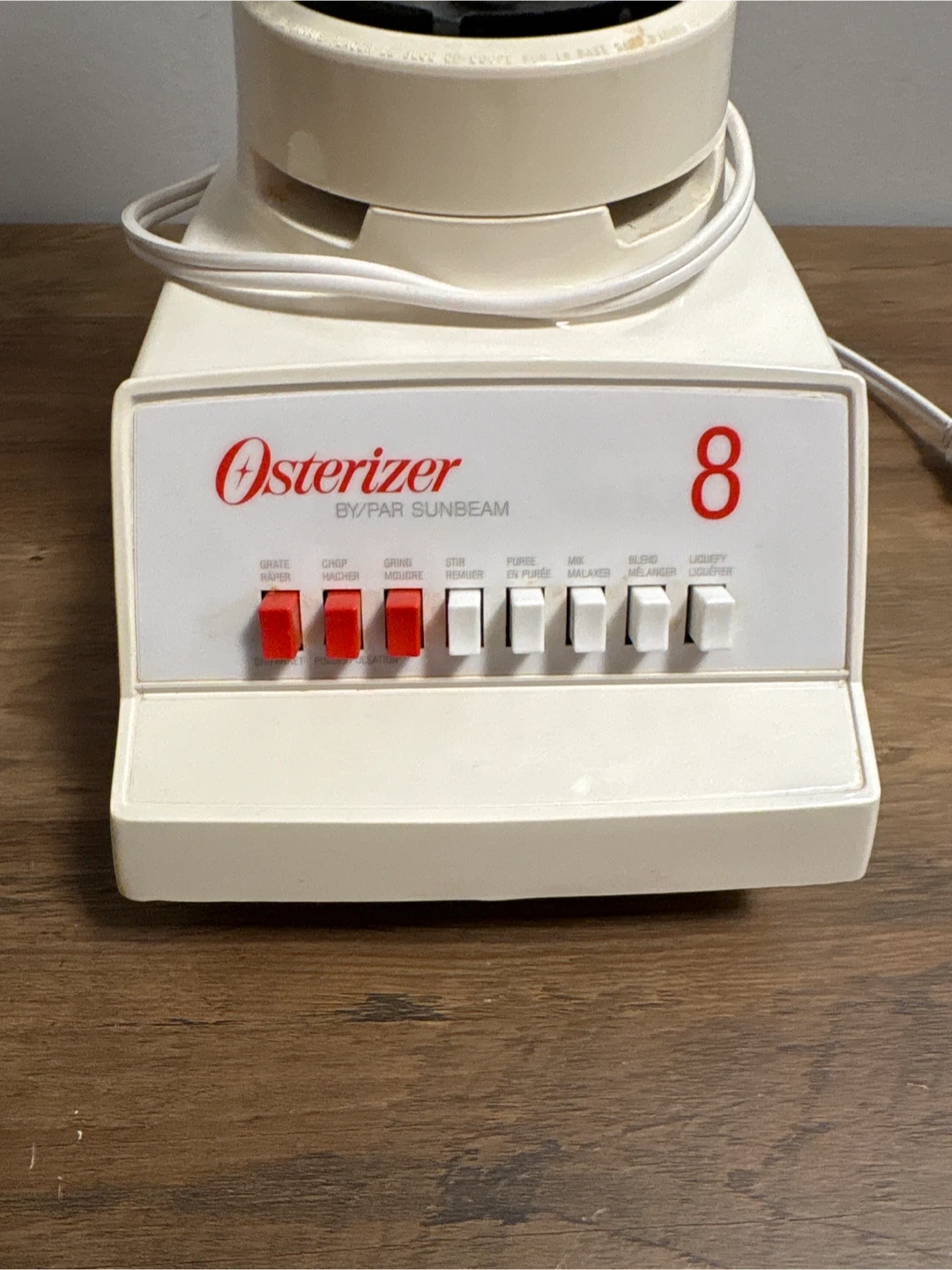 Selling an Osterizer blender with a measuring cup attachment. It's in good condition and ready for a new kitchen! Perfect for smoothies and more