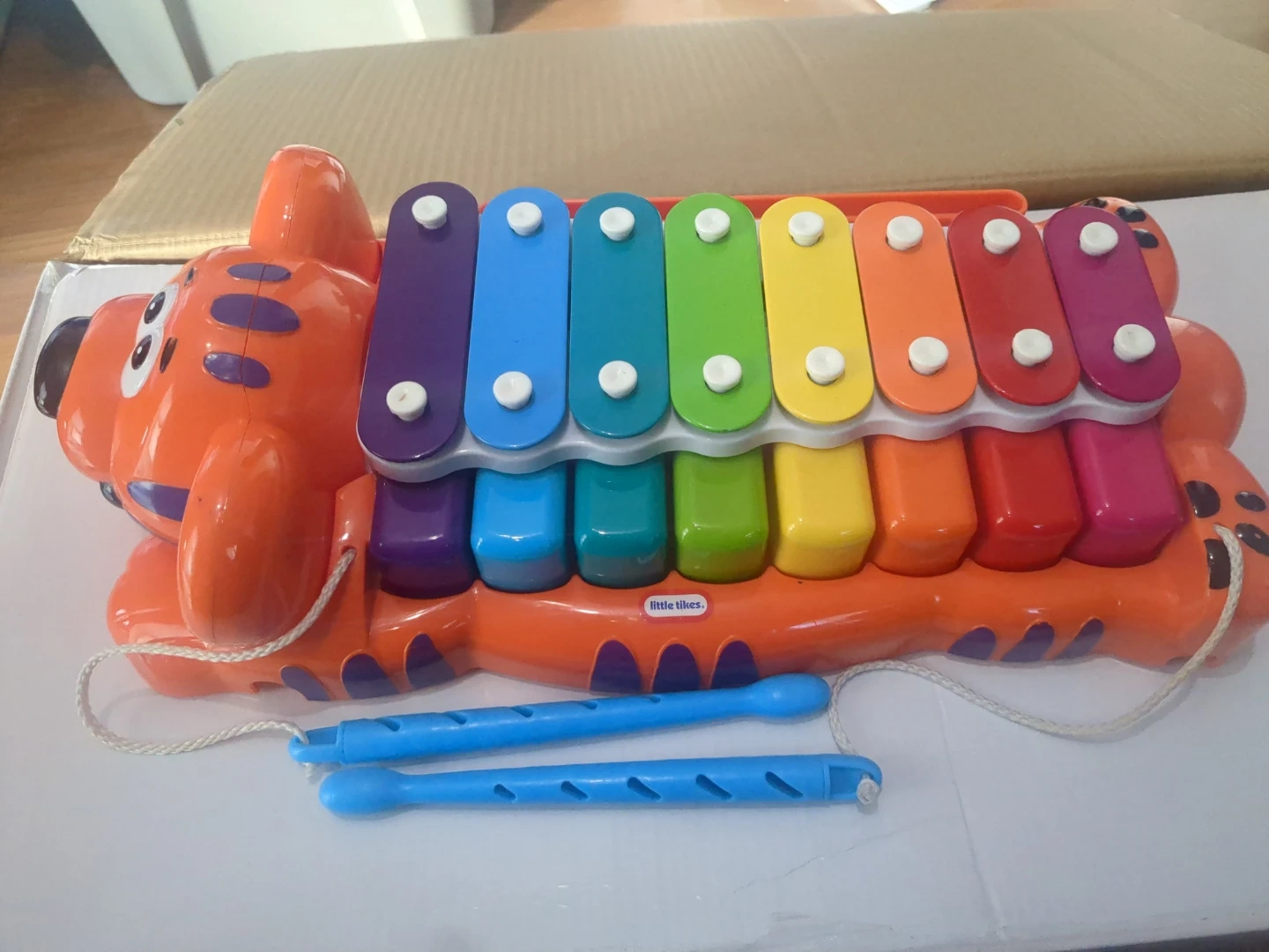 Selling a gently used Little Tikes Tiger Xylophone. It's in great shape and ready for a new musician! Comes with the two original blue mallets. The xylophone features colourful keys and is shaped like a friendly tiger, making it a fun and engaging musical toy for kids
