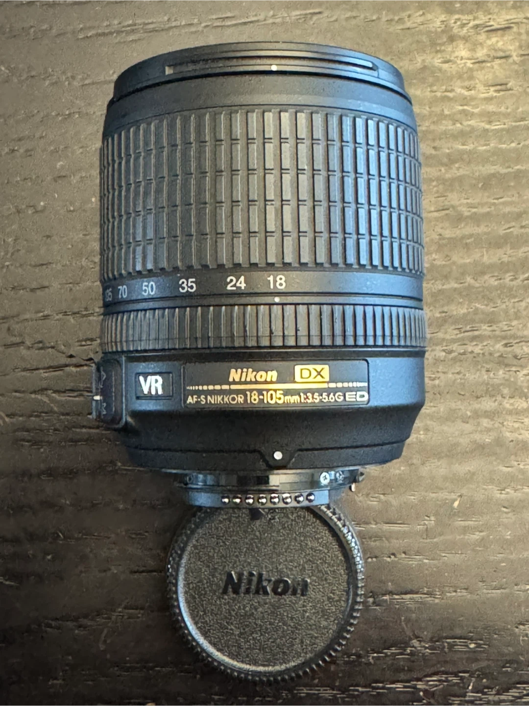 Selling a Nikon 18-105 DX AF-S f/3.5 - 5.6 ED VR (vibration reduction) lens. In mint like new condition. A great all purpose lens for many uses including travel.