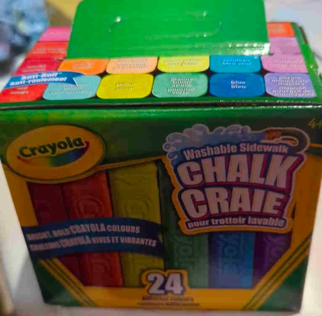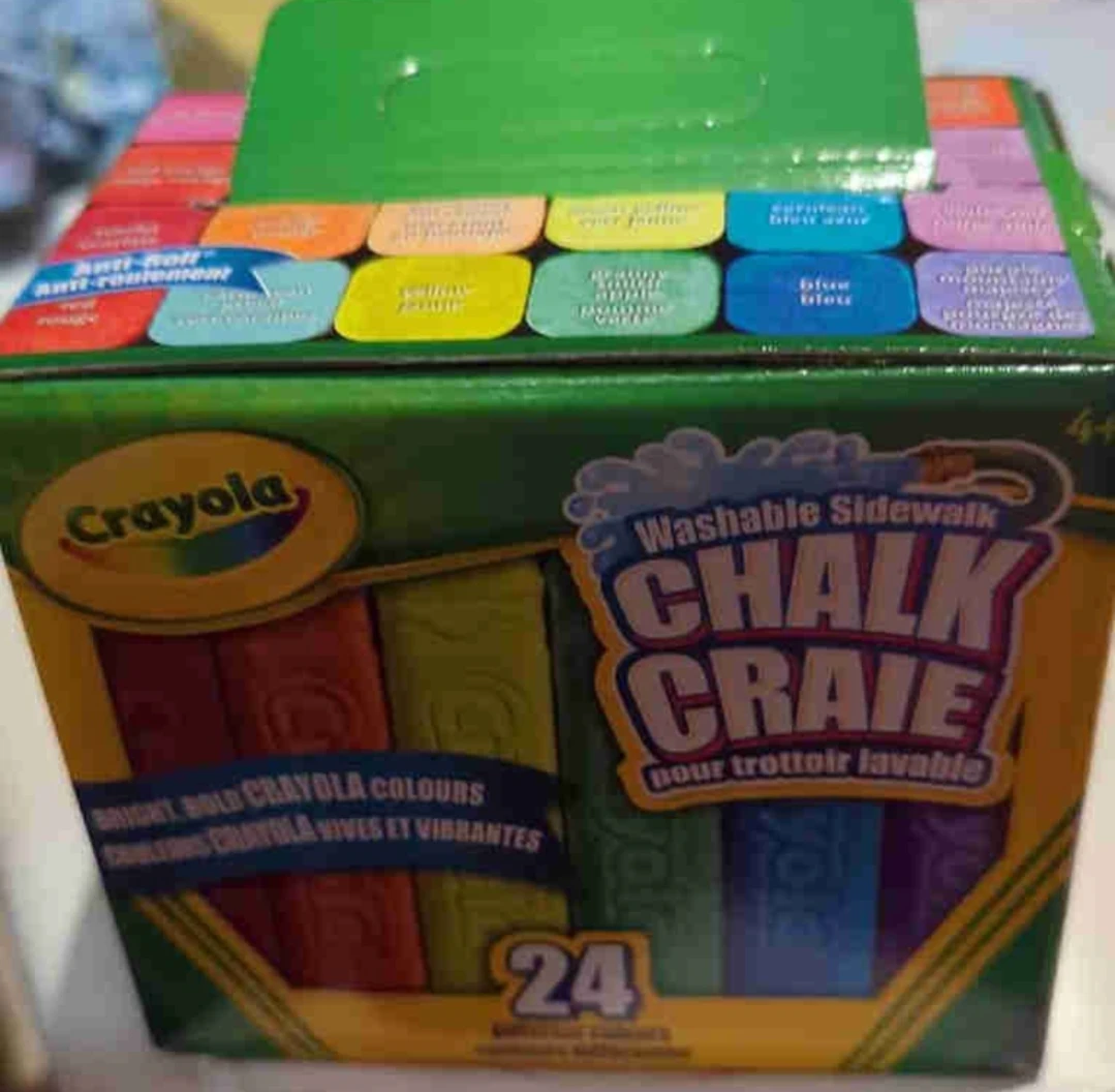 Selling a brand new box of Crayola Washable Sidewalk Chalk! This set comes with 24 bright and bold colours, perfect for creating fun art on the sidewalk or driveway. The chalk is washable, making cleanup a breeze! Comes in original packaging