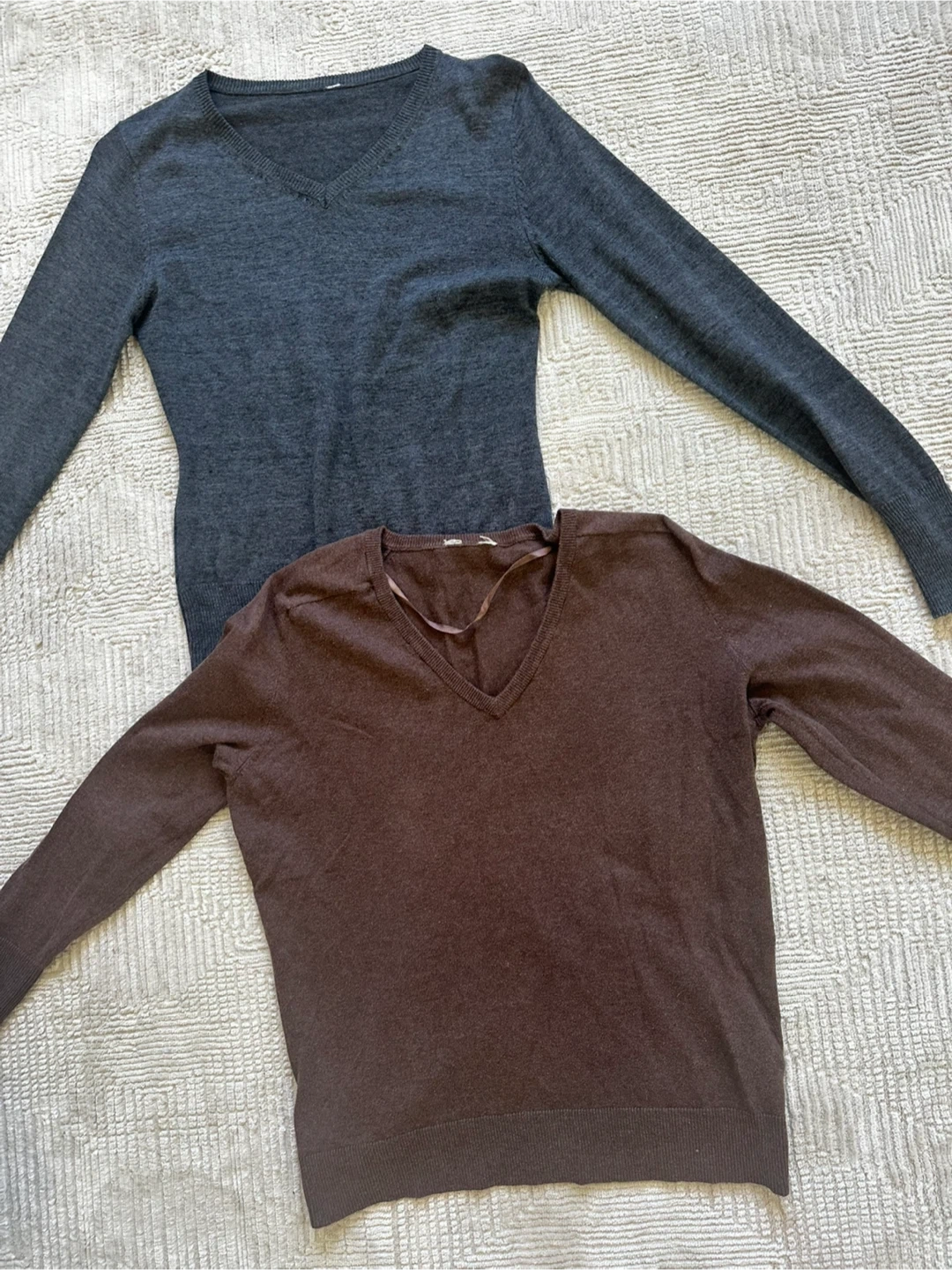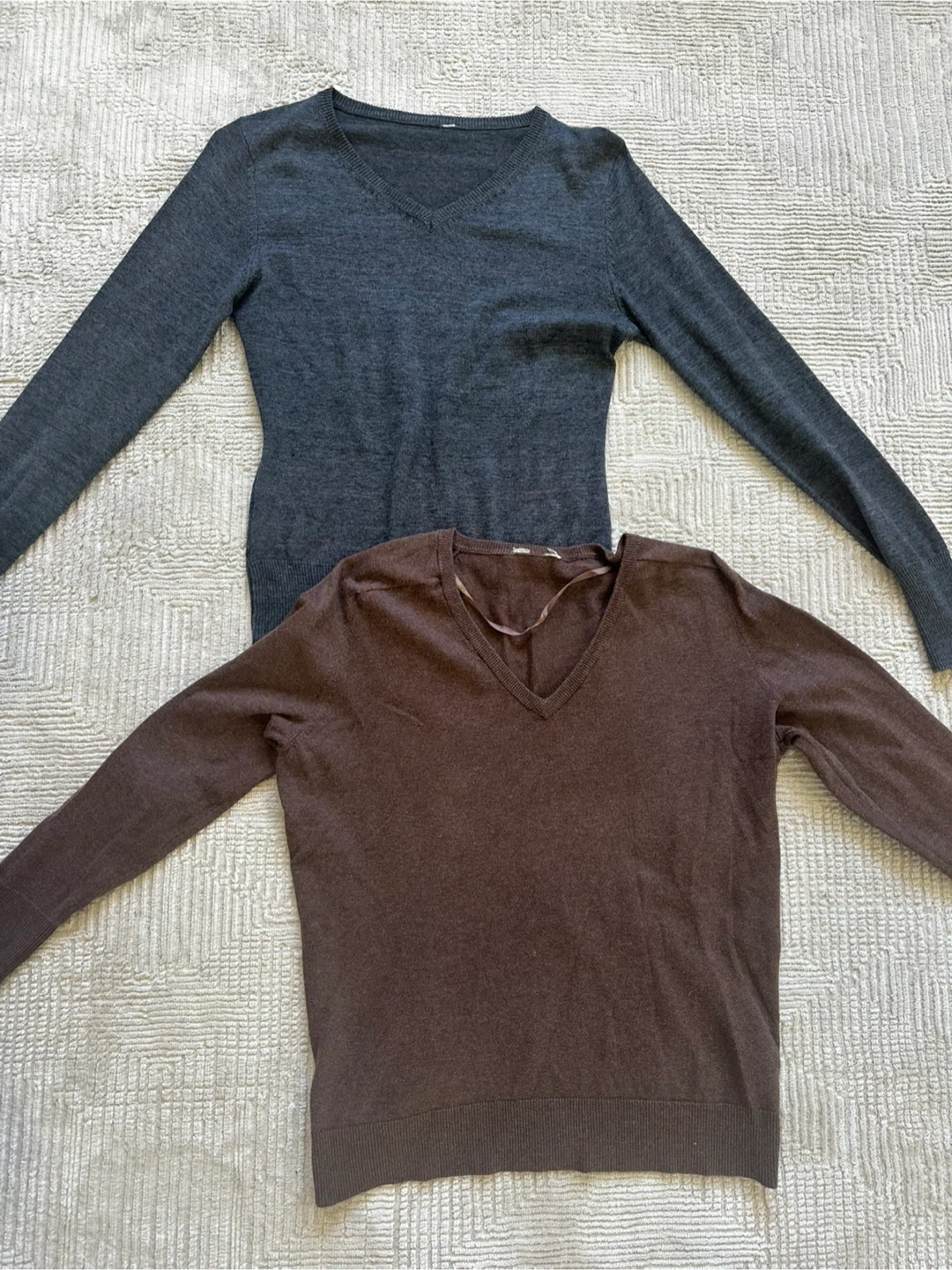 Two V-neck Sweaters - Grey & Brown