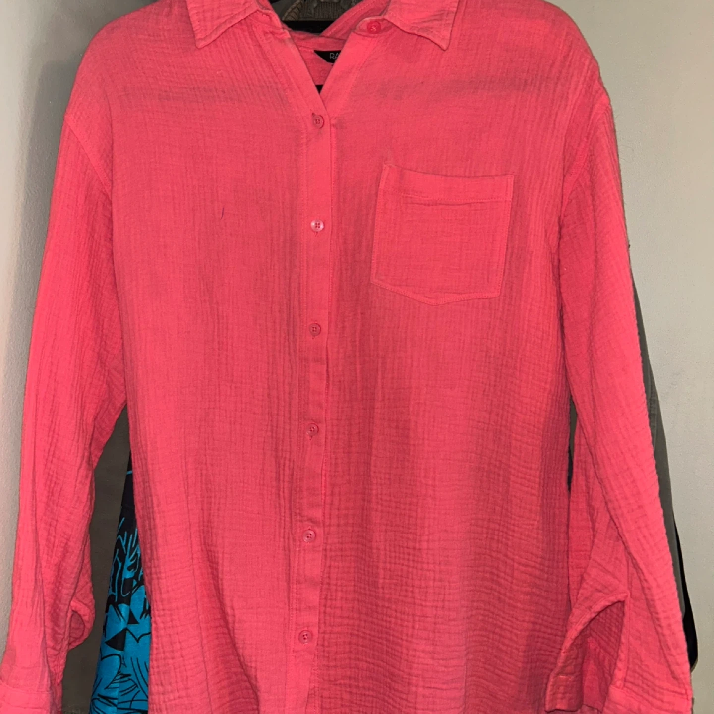 A lovely pink button-up shirt from Rachel Roy! It's a size medium and has a nice, relaxed fit. Perfect for adding a pop of colour to your wardrobe, this shirt is in great condition and ready for a new home