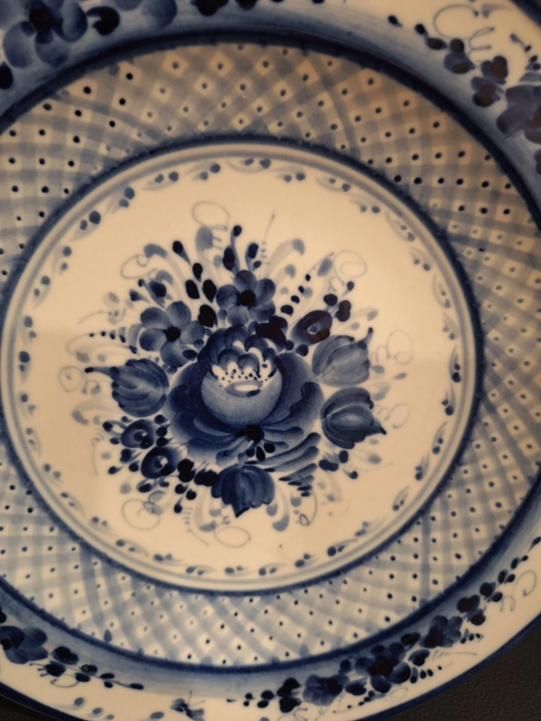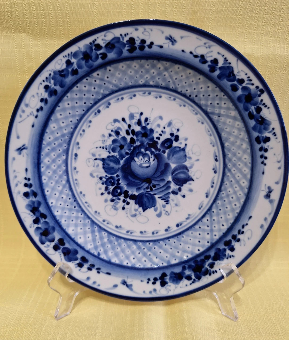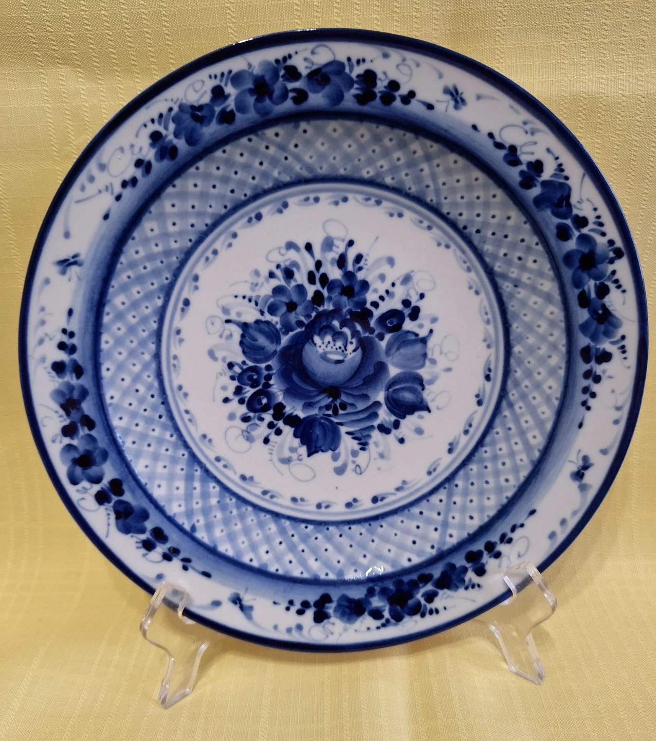 Vintage Gzhel Russian Handmade Floral Flow Blue 10" Plate