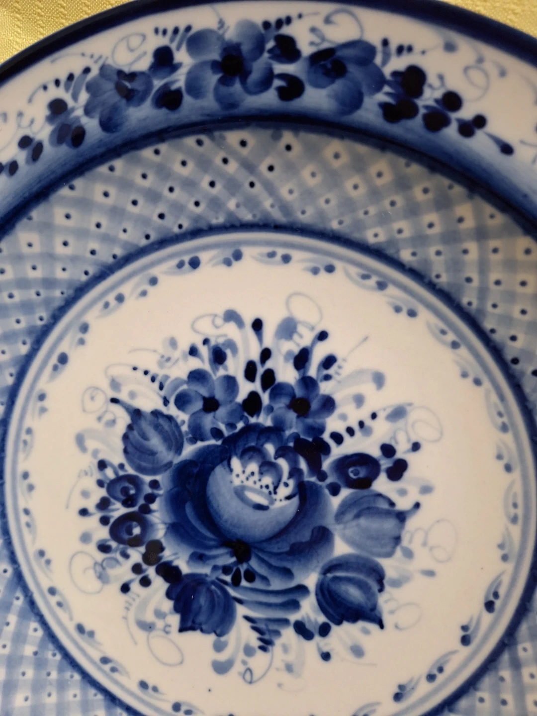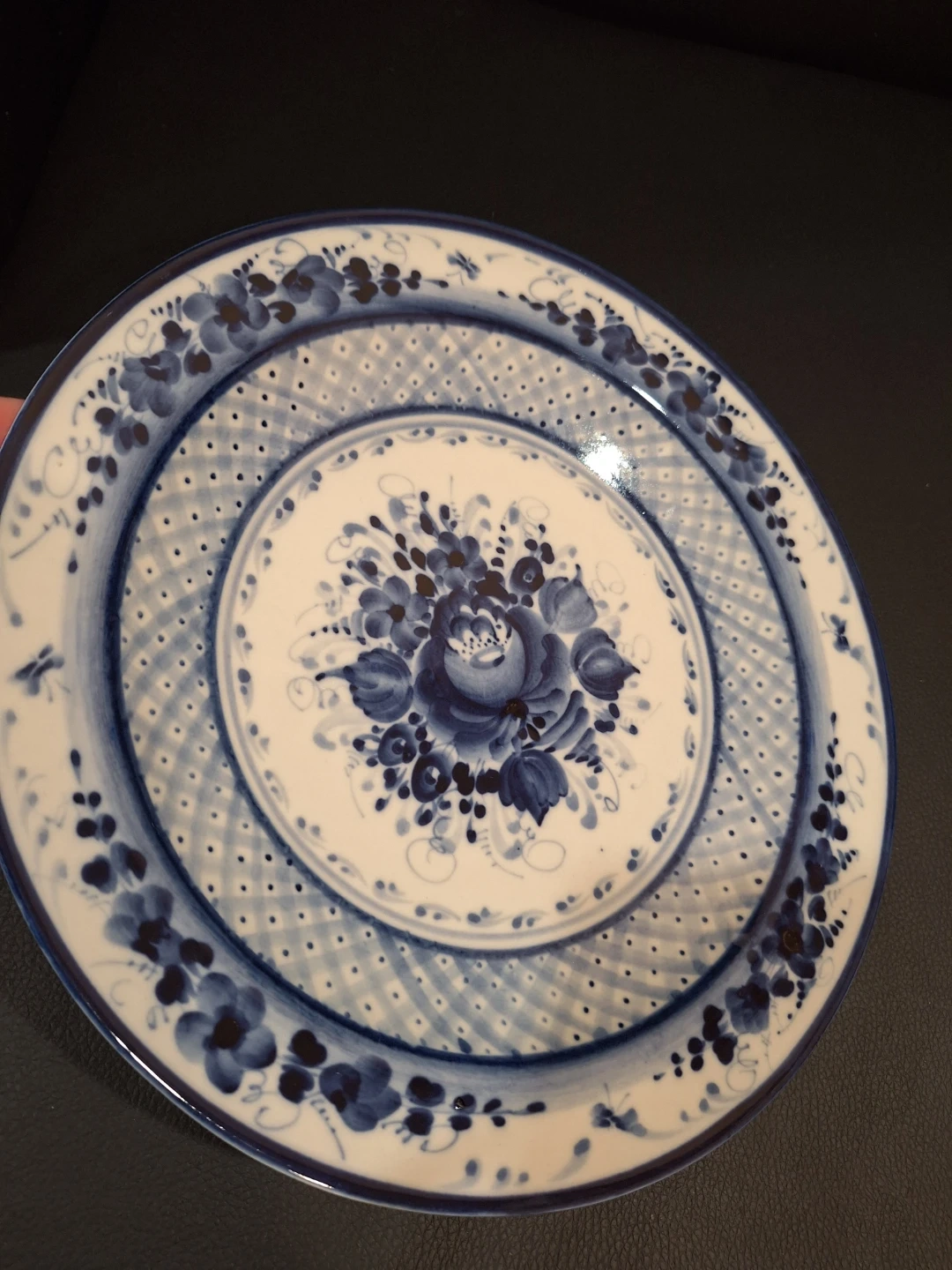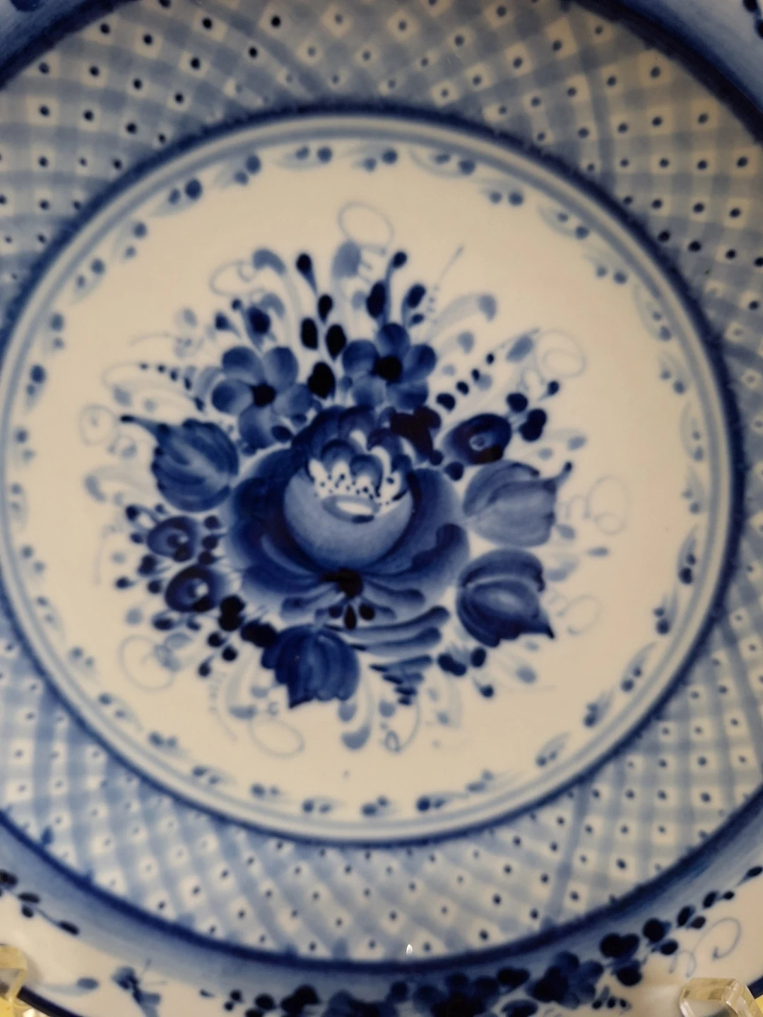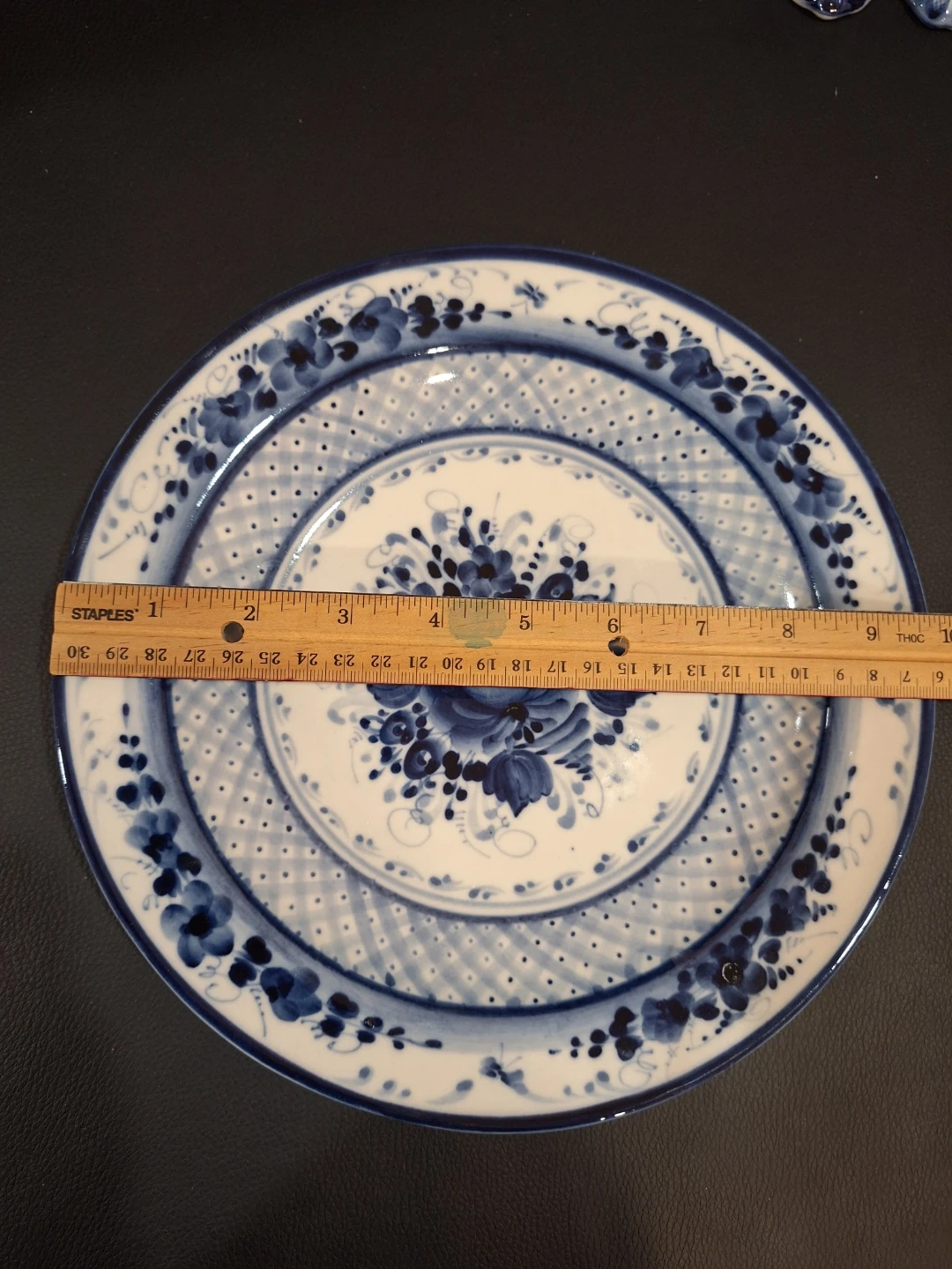 Vintage Gzhel Russian Handmade Floral Flow Blue 10" Plate