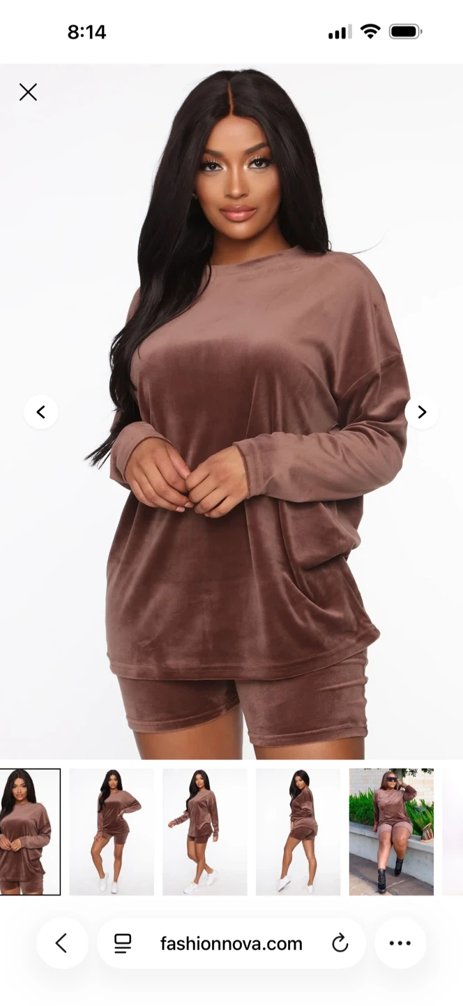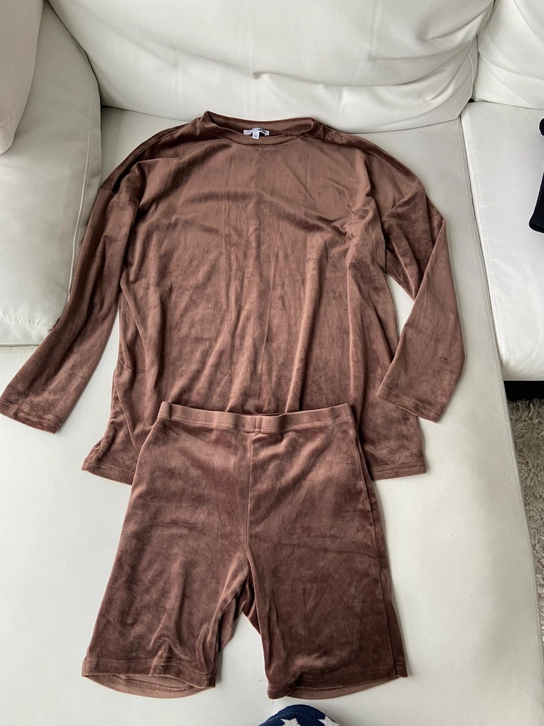Selling a Fashion Nova brown velvet lounge set. It includes a long-sleeved top and shorts. Perfect for lounging around the house or running errands in comfort and style. Soft and comfortable