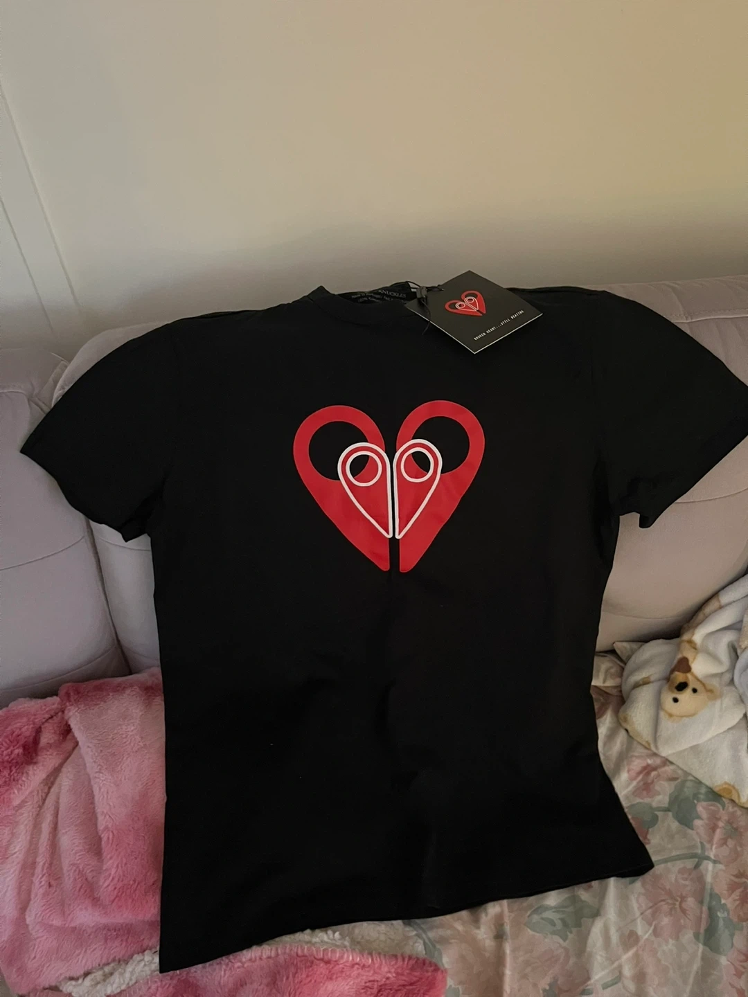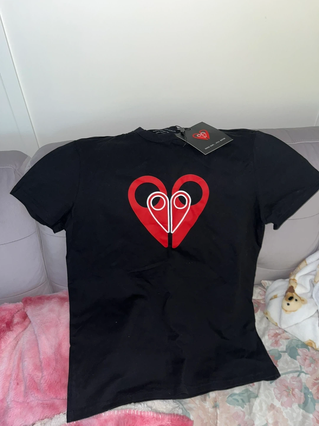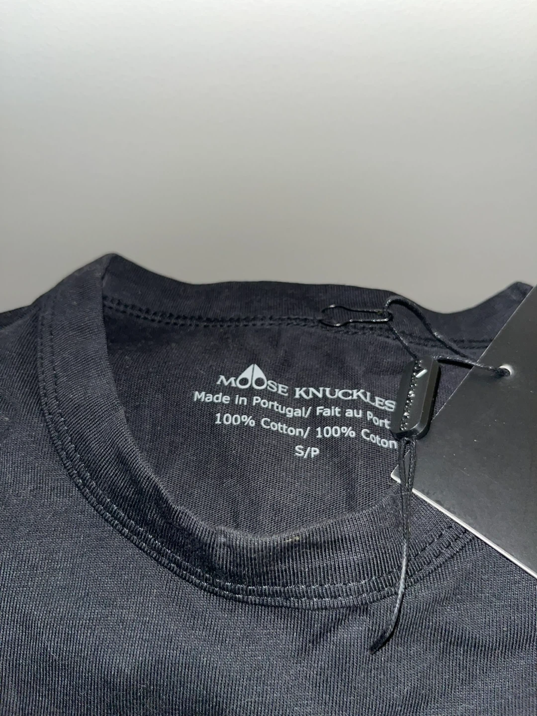 Selling a brand new Moose Knuckles t-shirt! It's black with the heart and scissors logo in red and white. The material is 100% cotton. Size is S.