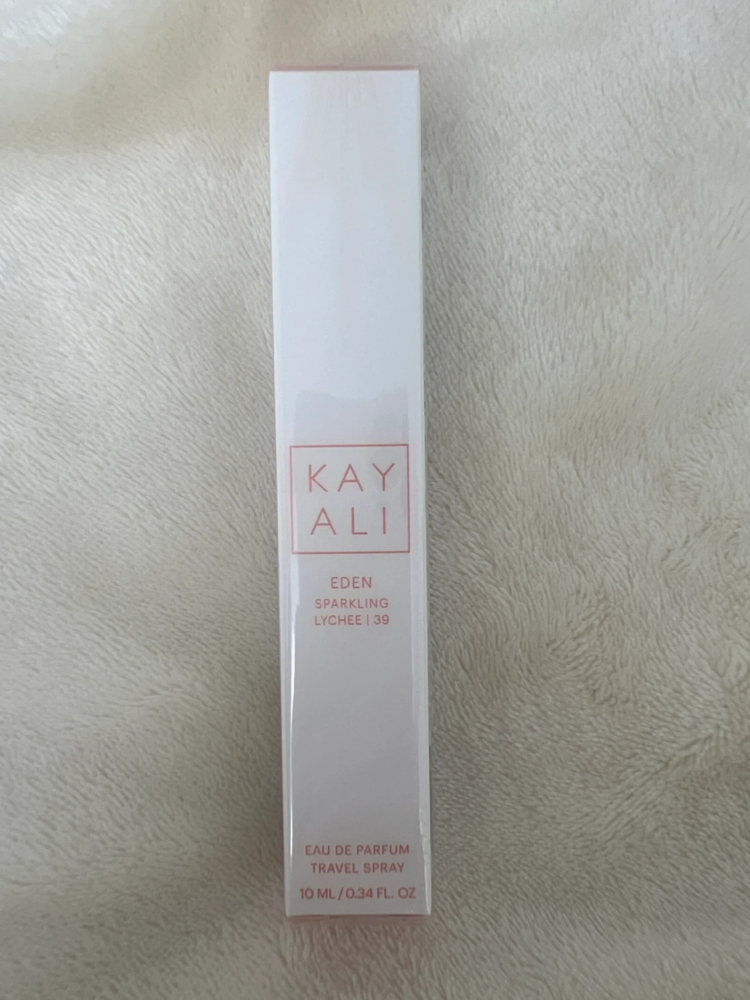 Selling a Kayali Eden Sparkling Lychee | 39 travel spray. It's an Eau de Parfum, 10ml / 0.34 fl oz. Key notes include blackcurrant cassis, sparkling lychee, rose damascena, candied violet, sugared amber, and sandalwood