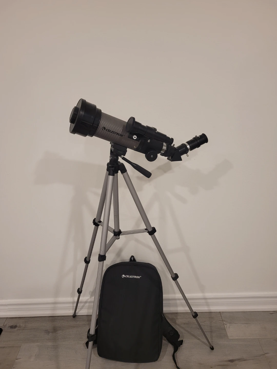 Selling a Celestron telescope that's in great shape! It comes with its tripod for stable viewing and a convenient carrying bag, making it easy to transport and store. Perfect for anyone interested in astronomy!