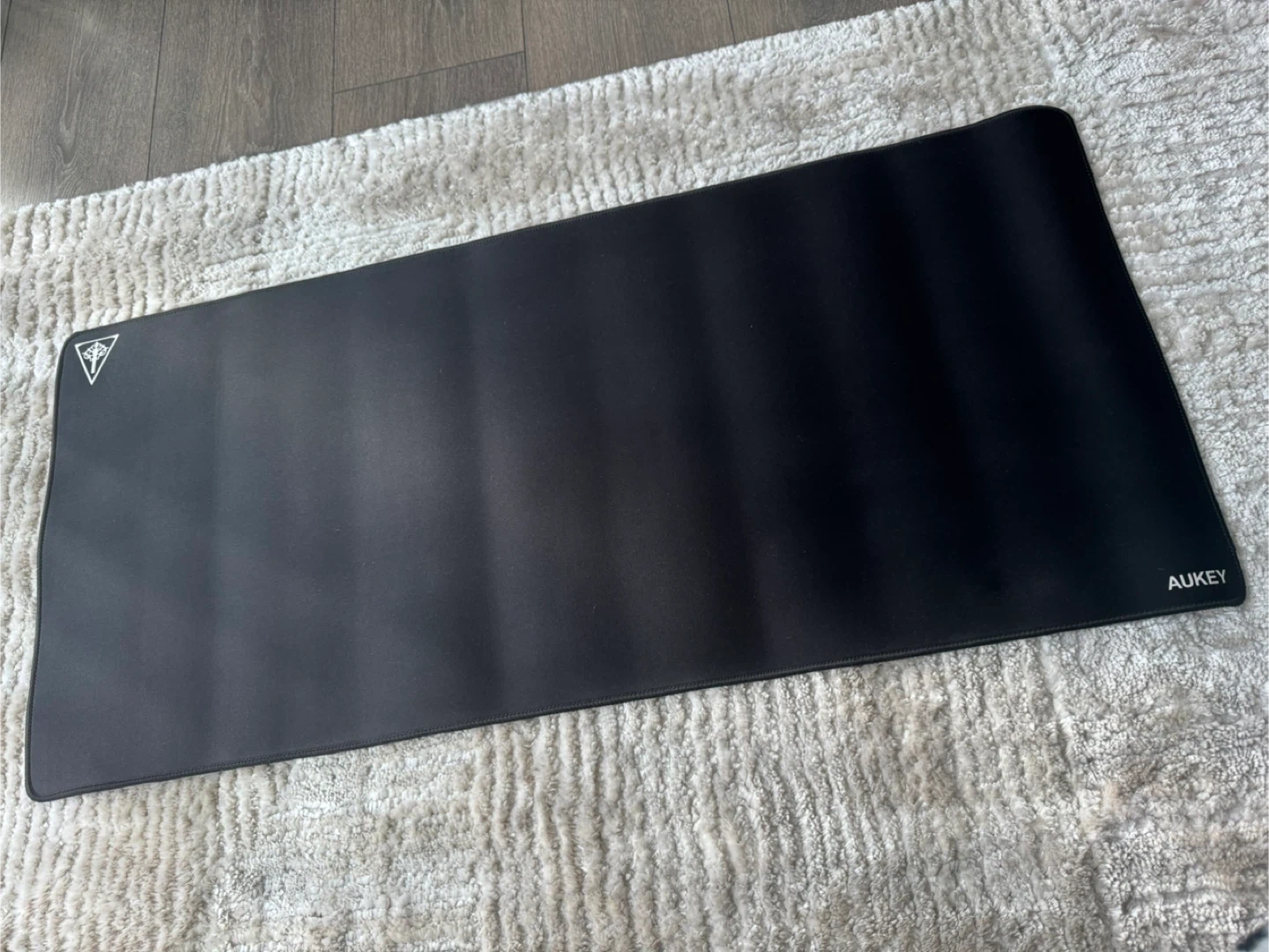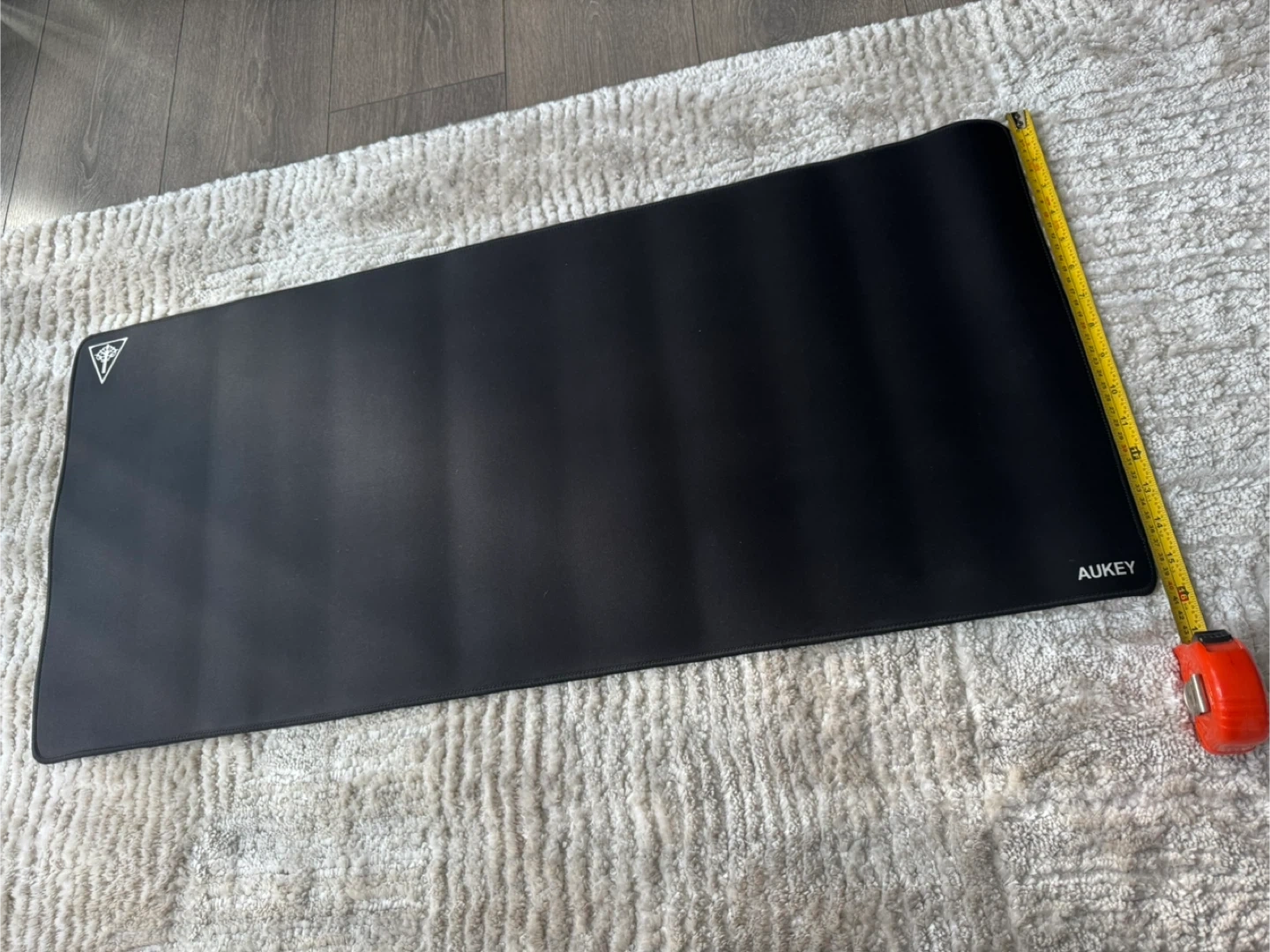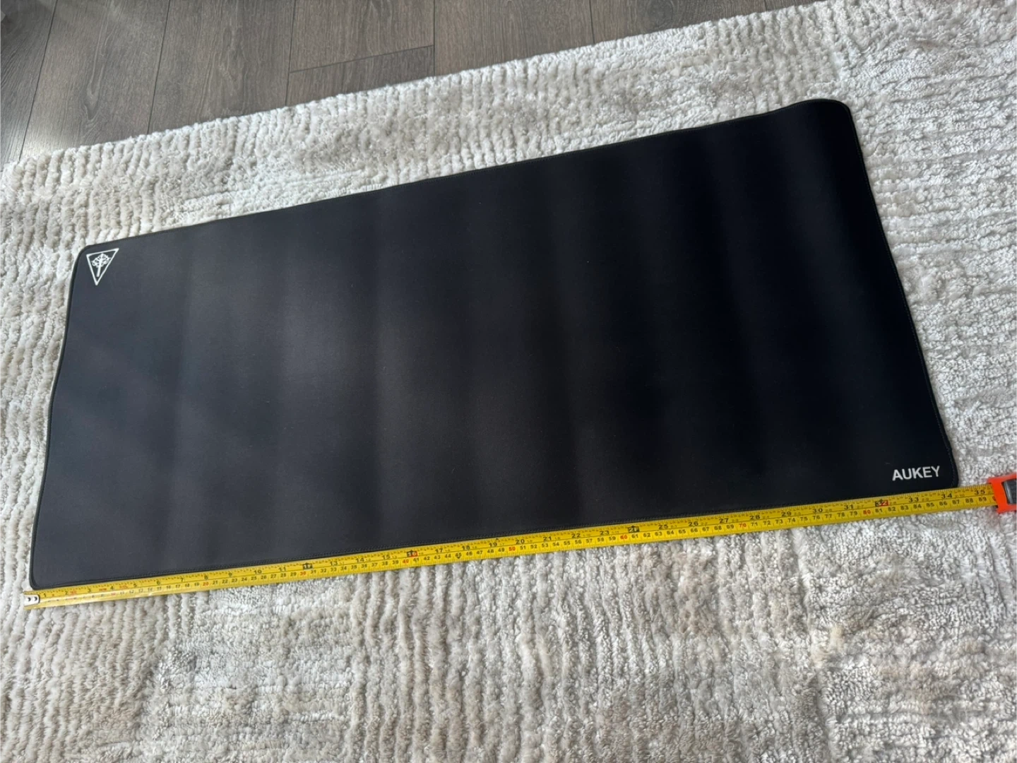 Selling a large black Aukey gaming mouse pad. It measures approximately 88 cm in length and 44 cm in width. Perfect for gaming or office use!