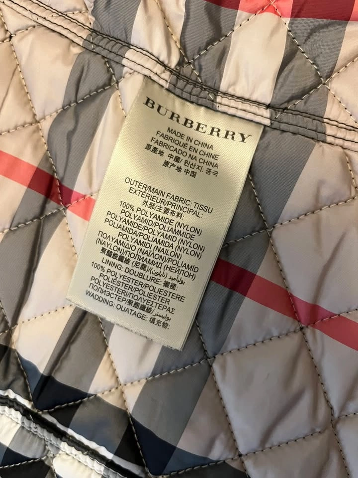 Lining: Fully lined in the signature Burberry check pattern (grey, black, white, and red colorway).