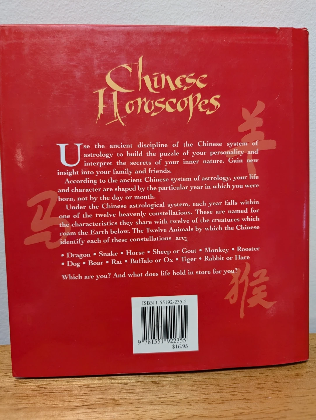 Selling a copy of "Chinese Horoscopes: An easy guide to the Chinese system of astrology" by Debbie Burns. It's a fascinating look into the world of Chinese astrology and the zodiac animals. Originally bought for $16.95