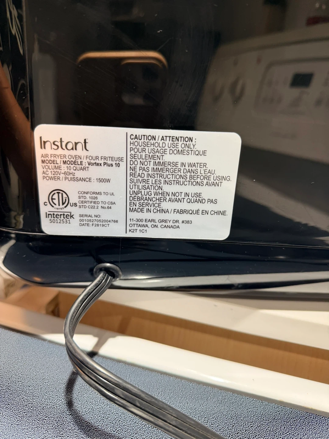 Comes with rotisserie drum Selling an Instant Vortex Plus 10 Quart air fryer oven. It's in great condition and ready to use! This model is perfect for air frying, roasting, broiling, baking, and dehydrating. It has a 1500W power output and is super easy to use for all your cooking needs