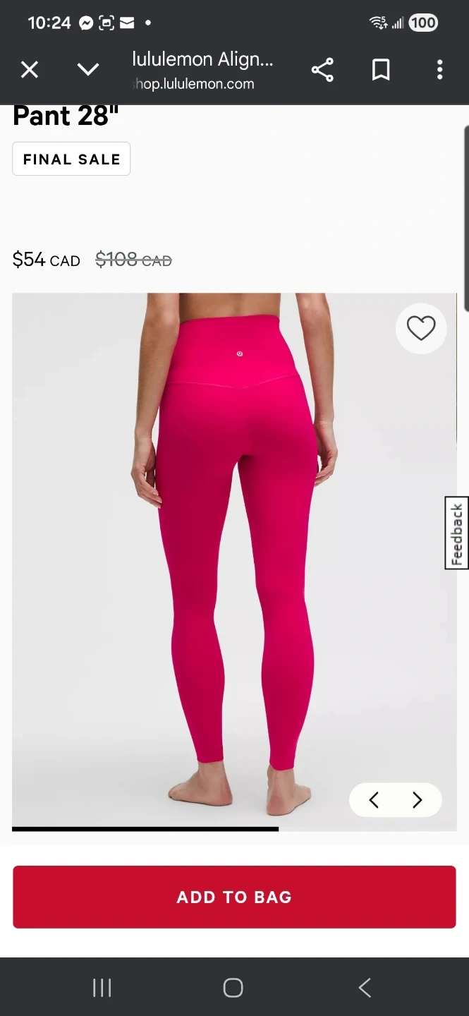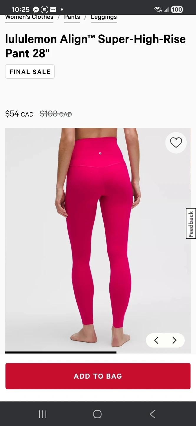 Buy & SellLululemon Align Super-High-Rise Pant 28" PinkLululemon Align Super-High-Rise Pant 28" Pink$65Selling a pair of Lululemon Align Super-High-Rise Pant in a vibrant pink colour! These are the 28" length. Originally, these retailed for $108 CADConditionNewSize12WHERE TO MEETCheck LocationView MapSELLERverifiedBilly JoBelle River600 reviews0 chats·0 favorites·14 viewsSEND CHAT TO SELLERHi Billy Jo! I’m interested in your listing.Hi Billy Jo! I’m interested in your listing.Get the Karrot app to chatSign In to chat
