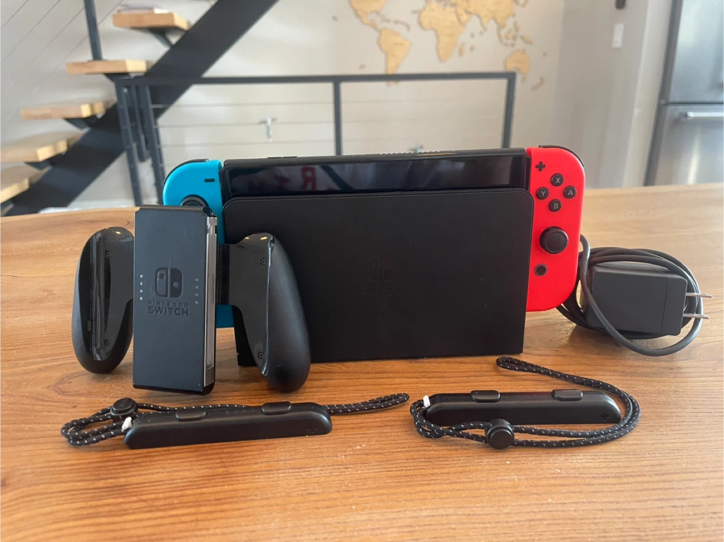 Selling a Nintendo Switch OLED console, complete with the blue and red Joy-Cons. Includes the wrist straps, dock, and charger so you can start playing right away!